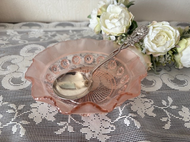 1900年初期、イギリス マザーオブパールのジャムスプーンです。 スプーンの部分はシルバープレートです。 エンボスで飾られています。 柄の部分はマザーオブパール(白蝶貝) ジャムやシュガースプーンとしてお使い頂けます。 スプーンの裏側に小さな禿げがございますが、 他は良いコンディションです。 お値段に反映させて頂きます。 ¥6.600→¥5.500 W3cm、H17cm