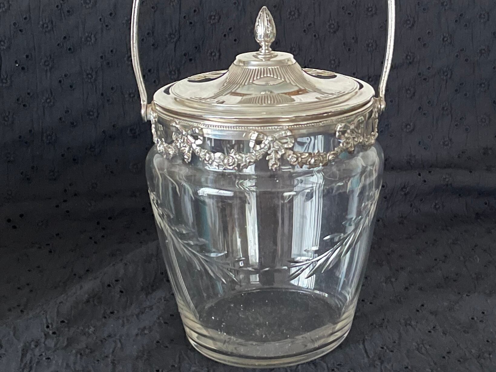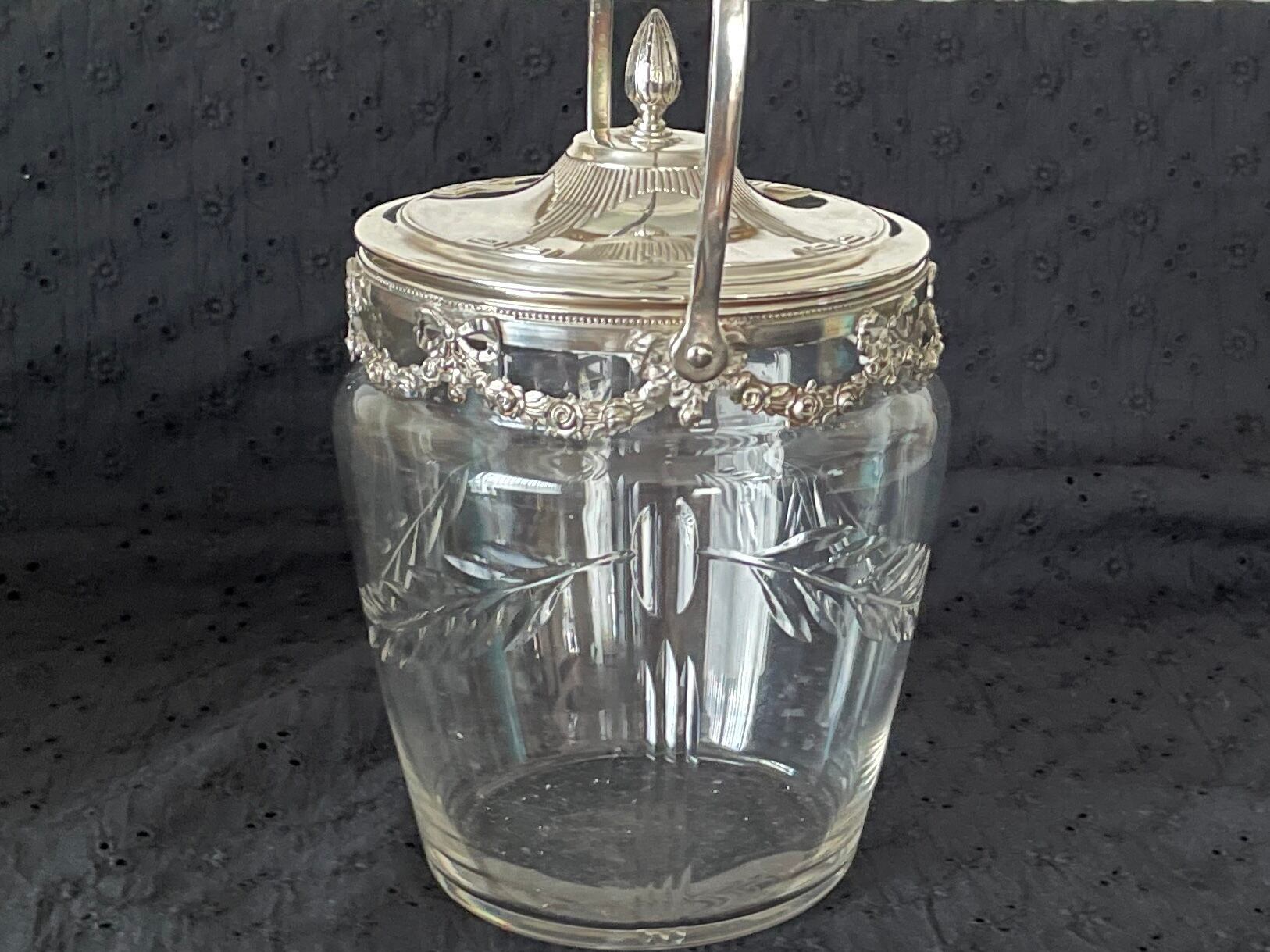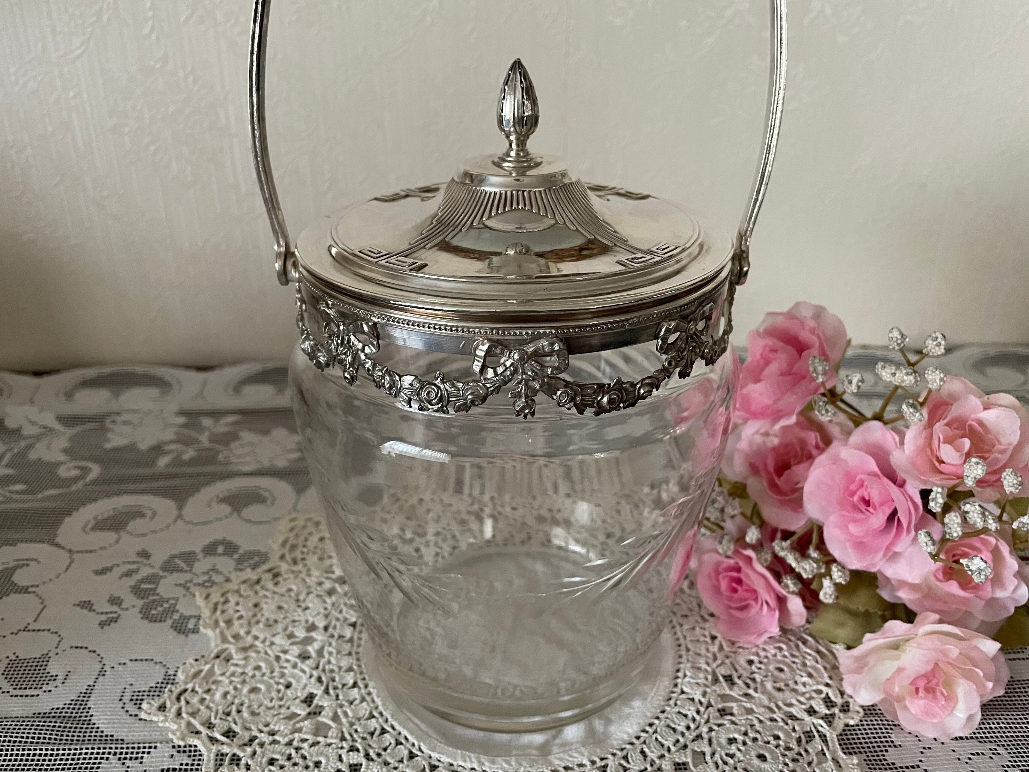 リボンガーランド が素敵なガラスのビスケットバーレルです。