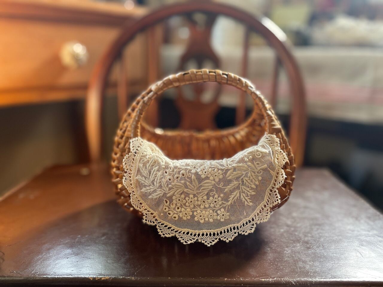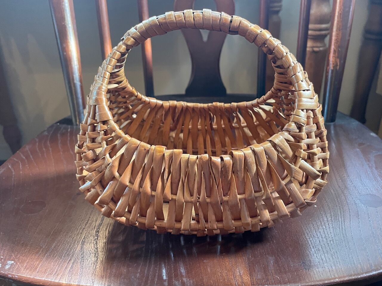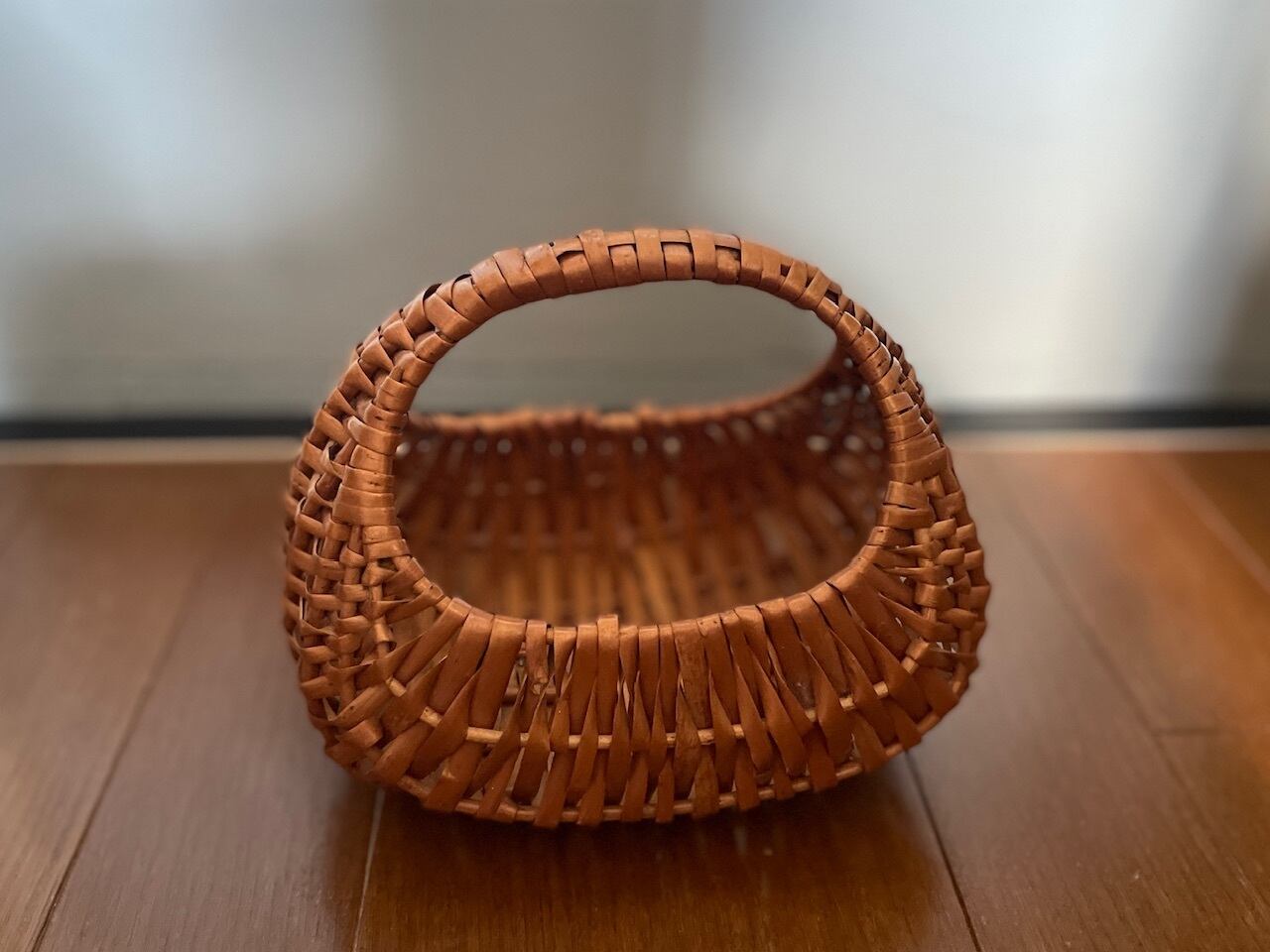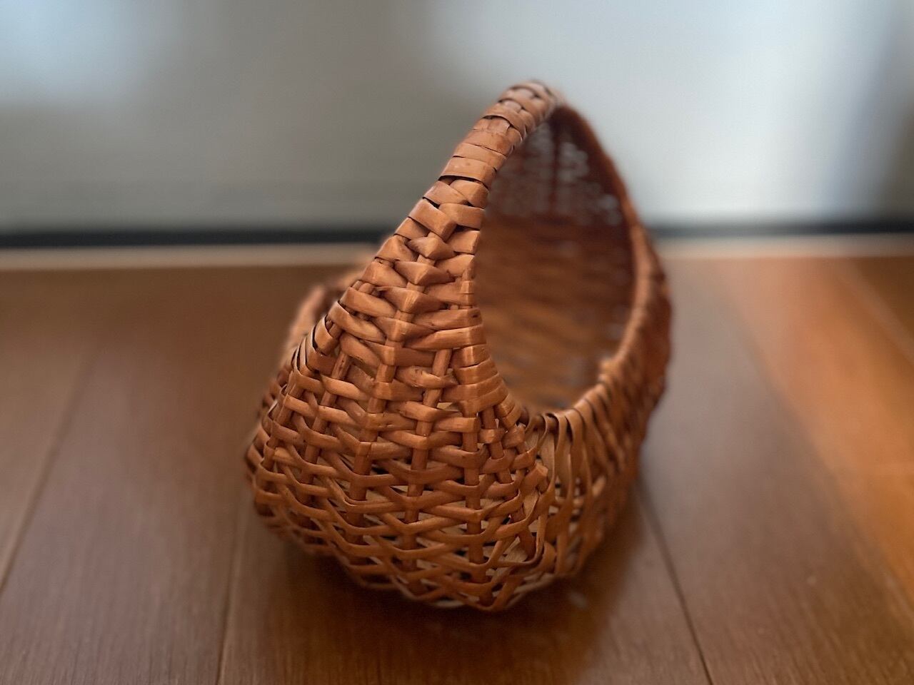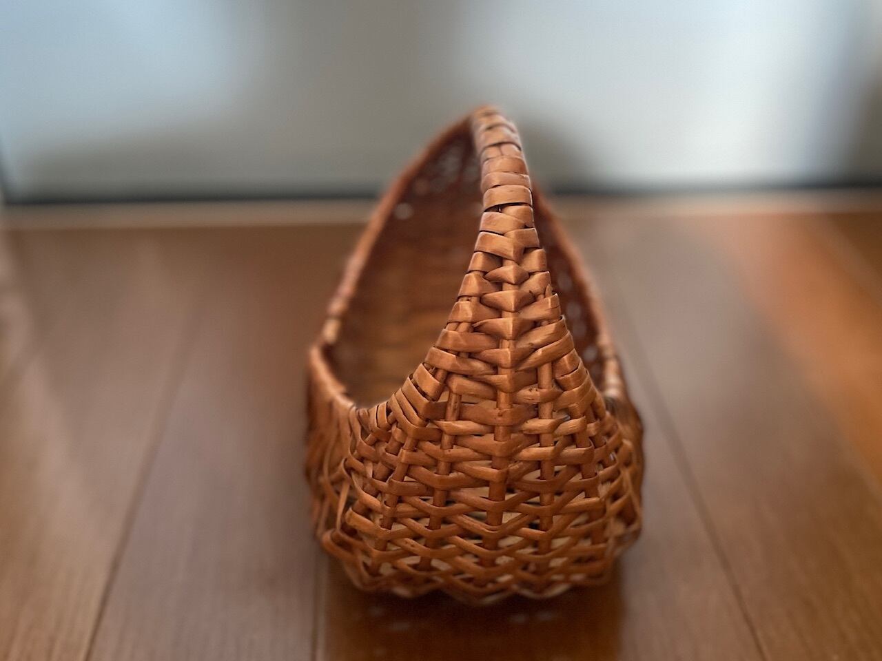 クロワッサンのような姿が可愛らしい、飴色のパニエ(バスケット)です。