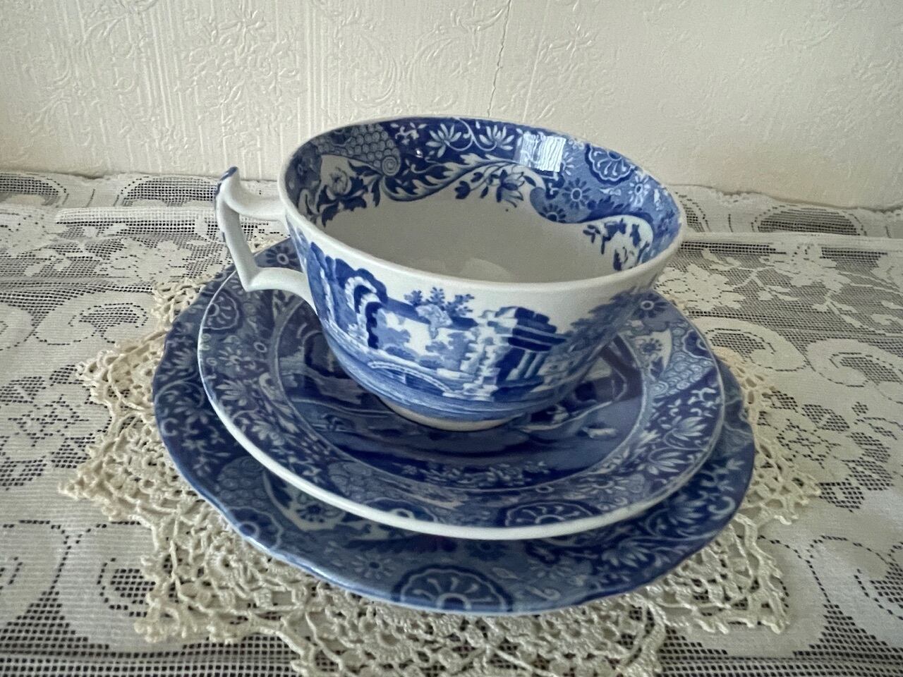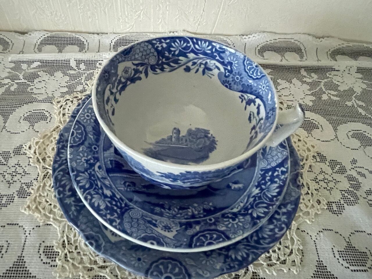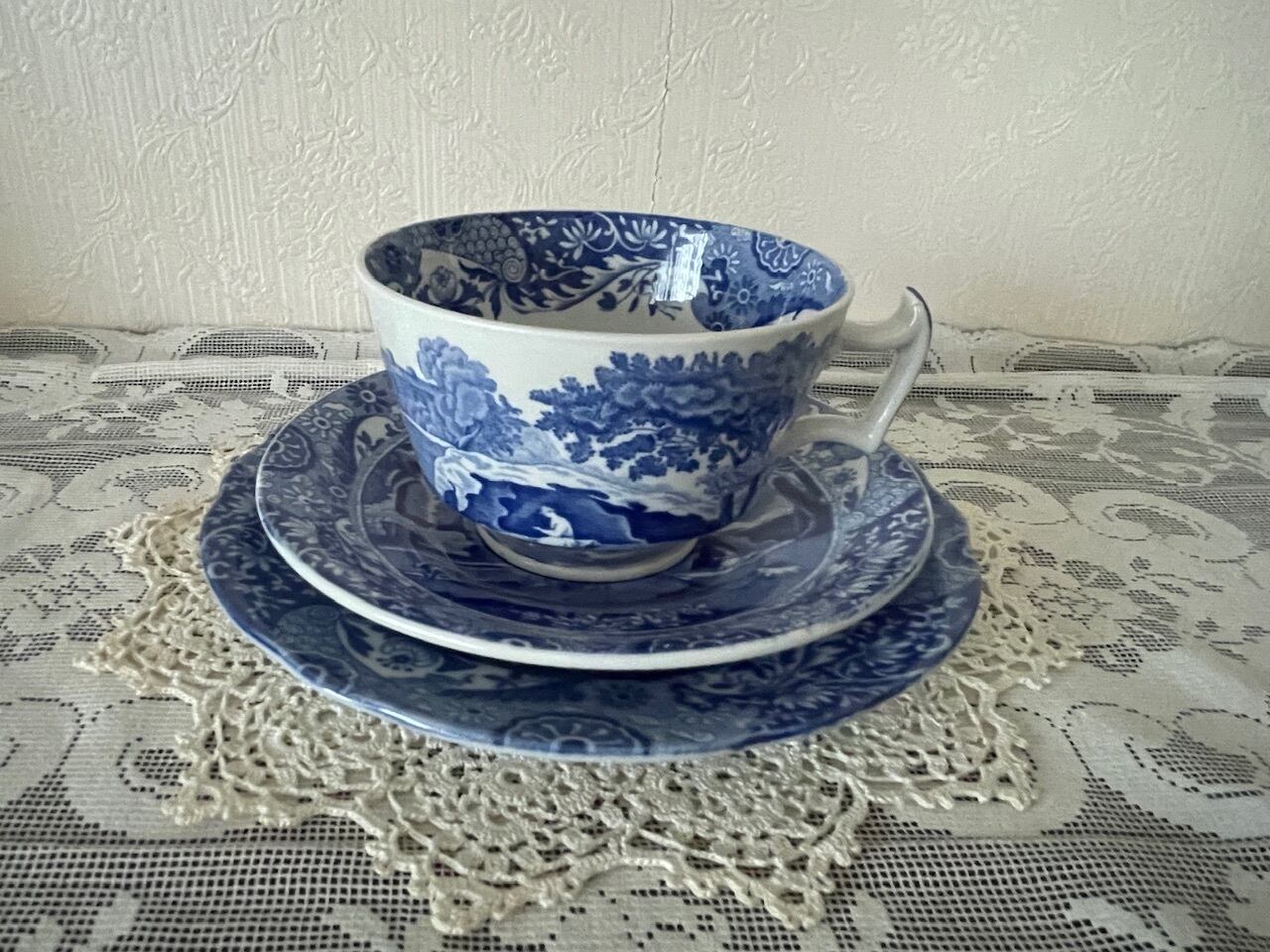 1920年代 コープランド・スポード ブルーイタリアンのトリオ(カップ&ソーサー、ケーキプレート)