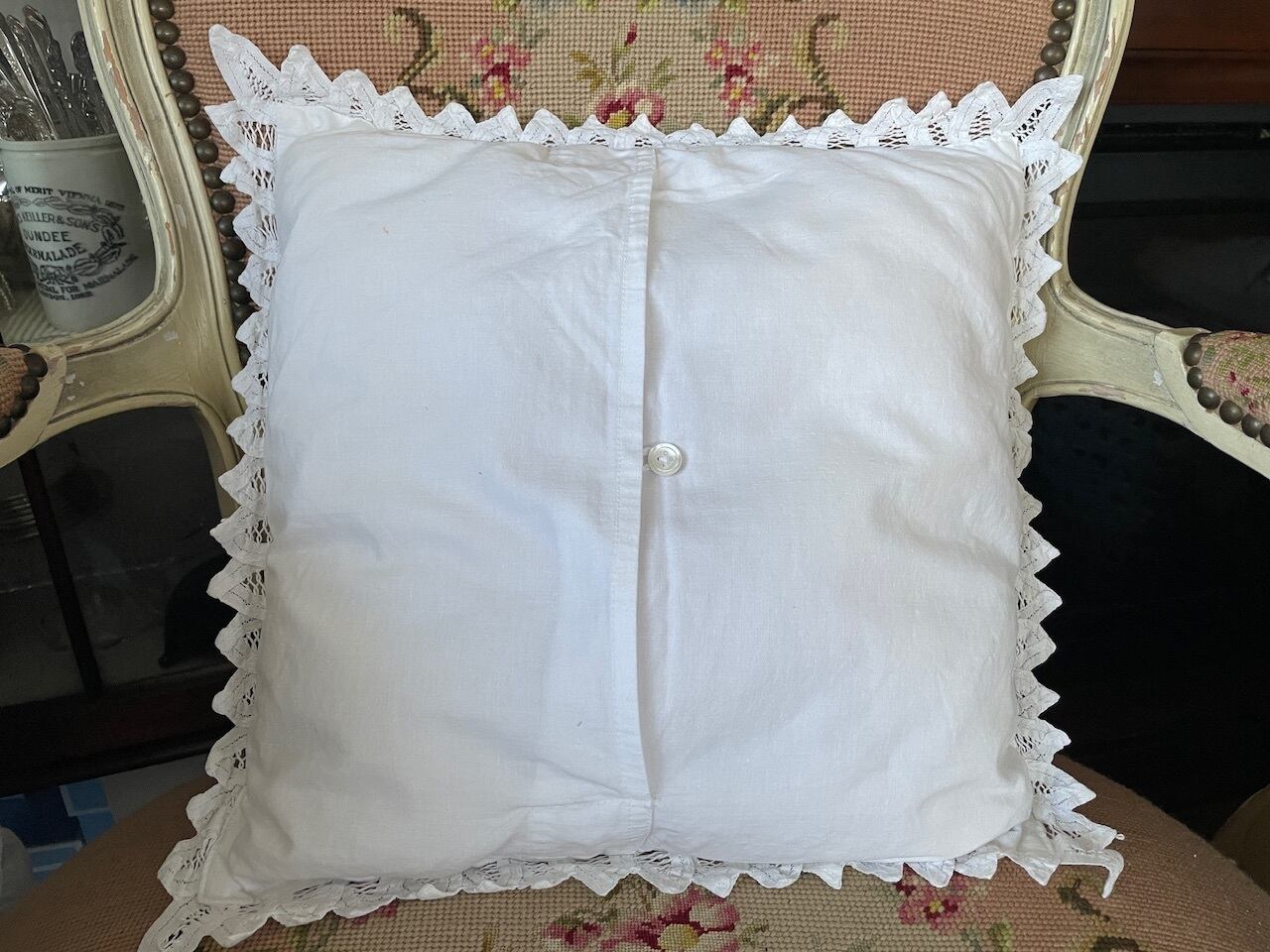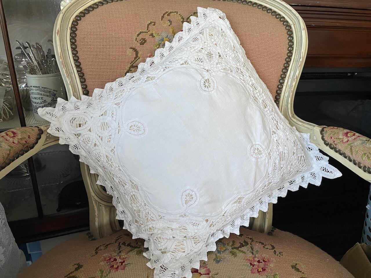 バテンレースが素敵なクッションカバーです。