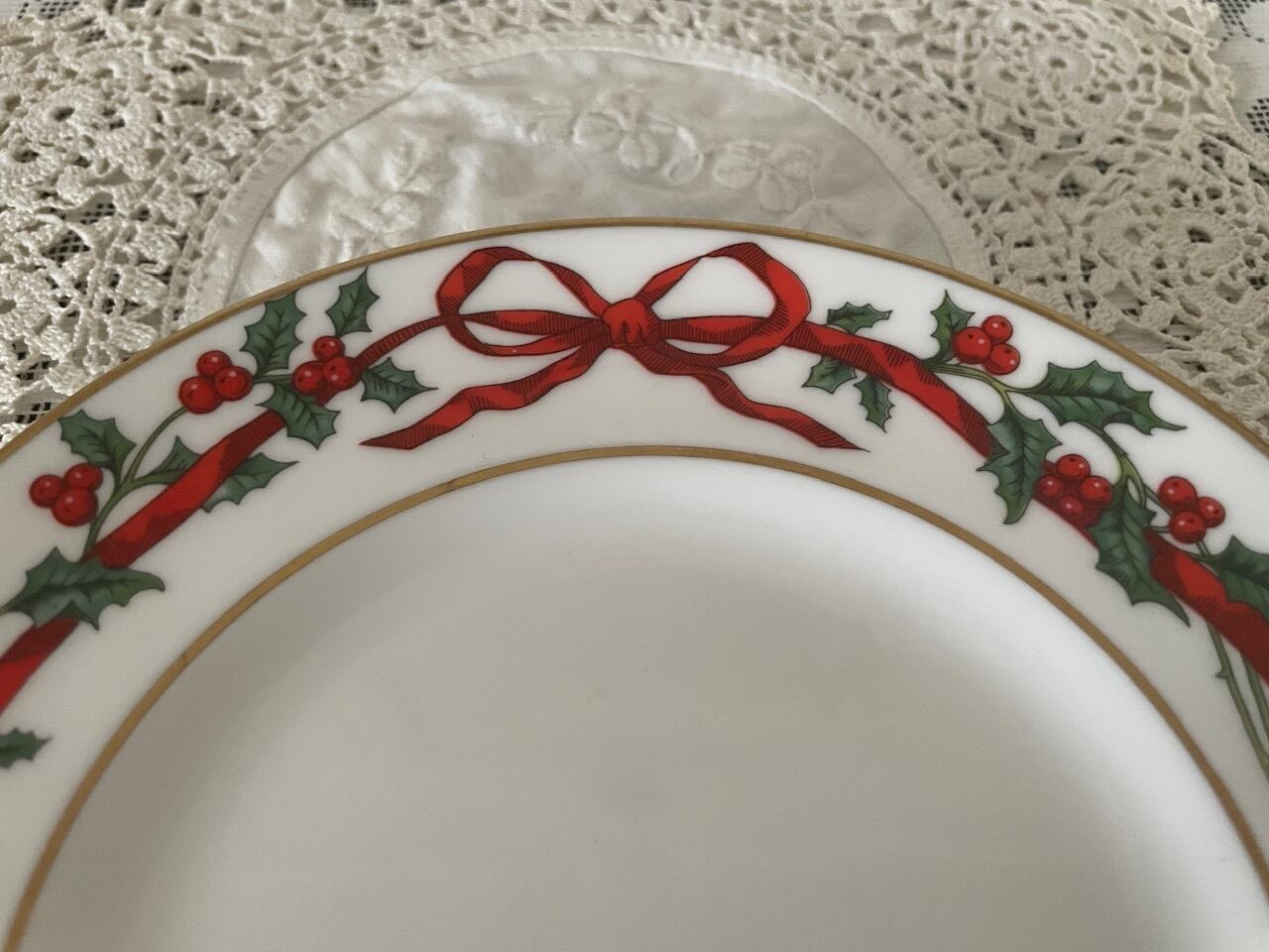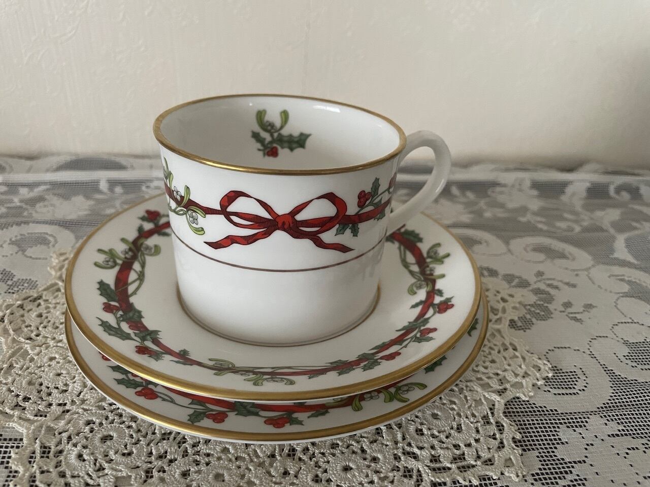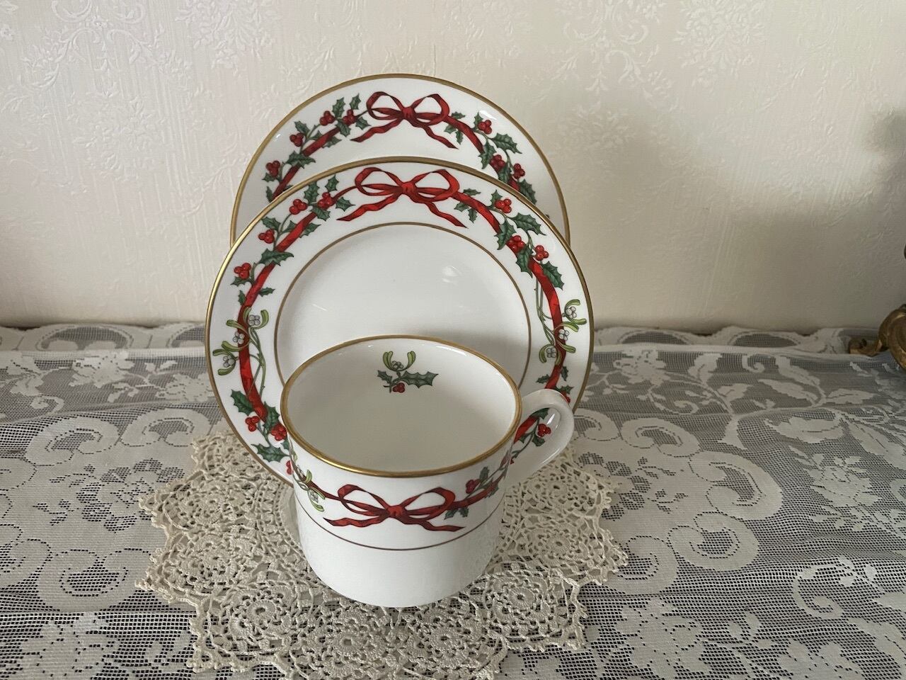 赤いおリボン&クリスマスホーリーが描かれたカップ&ソーサー、ケーキプレート