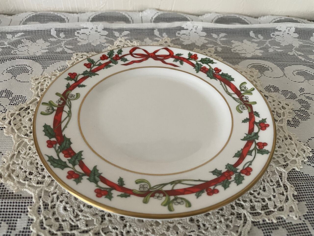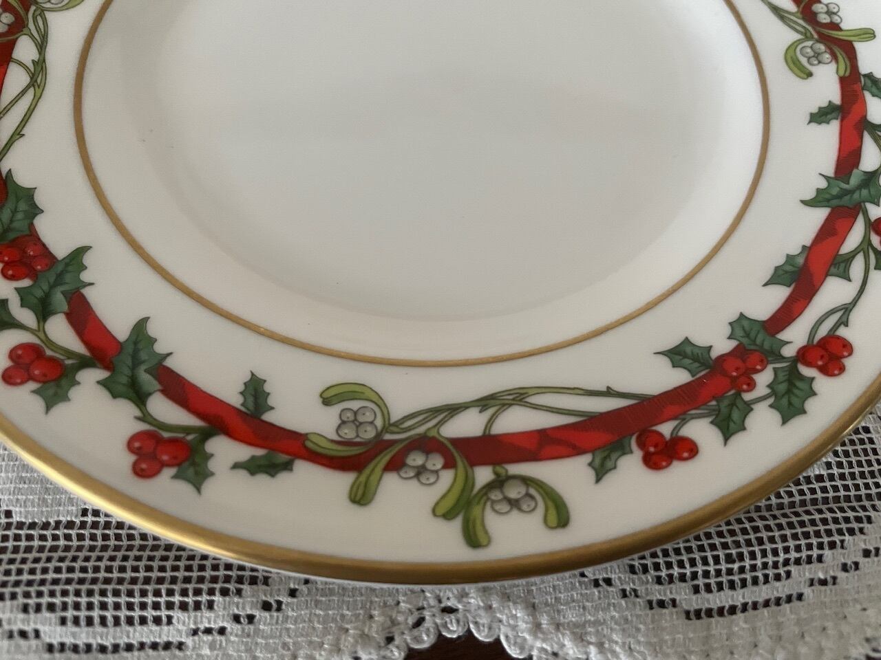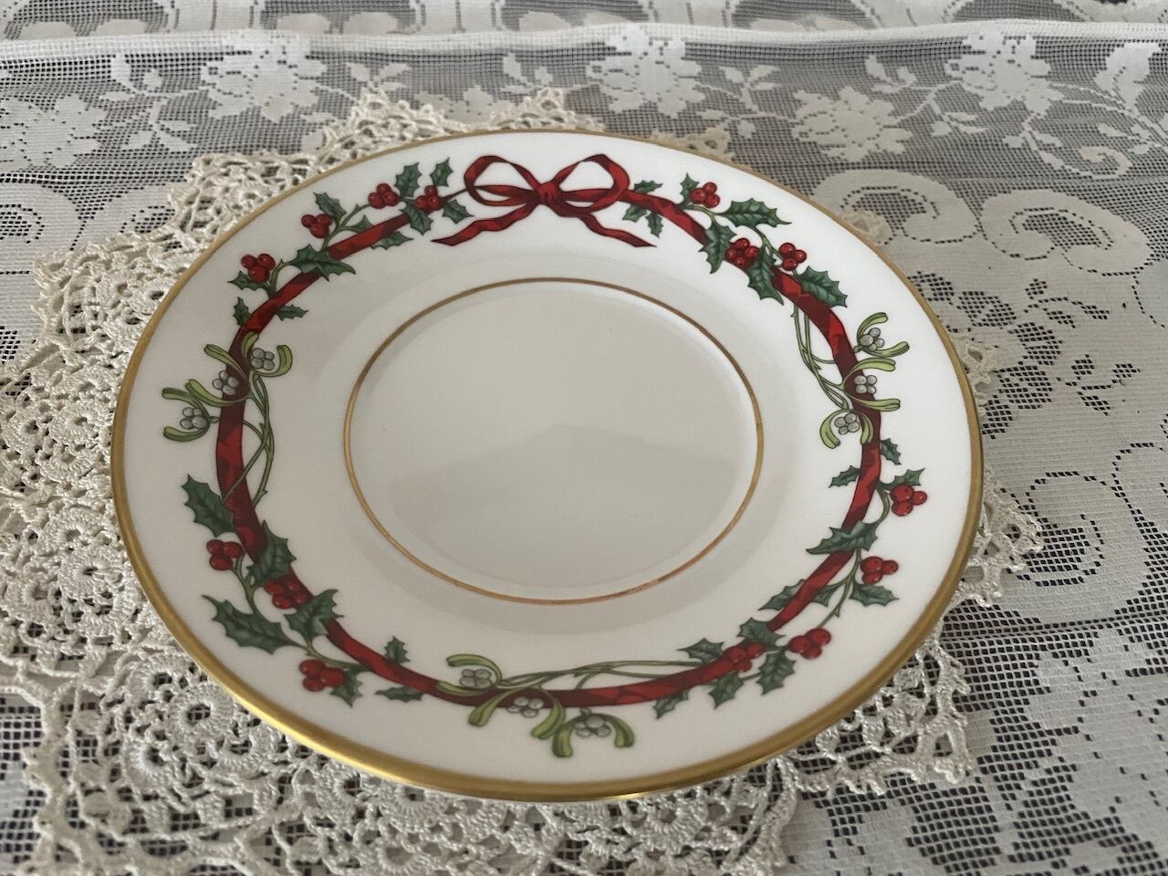 赤いおリボン&クリスマスホーリーが描かれたカップ&ソーサー、ケーキプレート