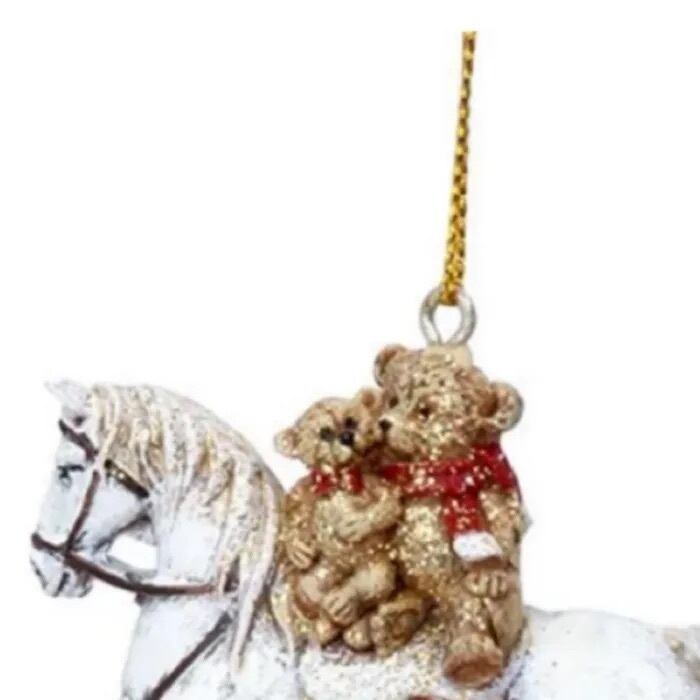 馬の上にはテディベアが乗っています。