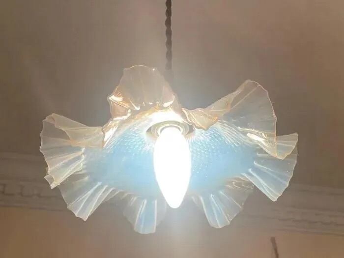 白いミルクガラスは、良く見かけますがブルーのグラディーションは珍しいです。