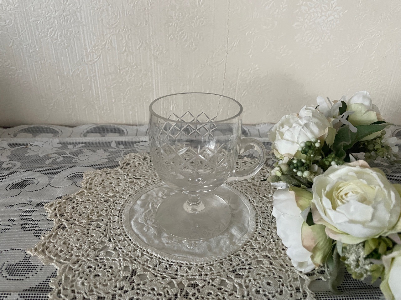 ハンドルに台座がついたカップに カスタードクリームや冷たいデザートを楽しむために使われていました。