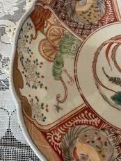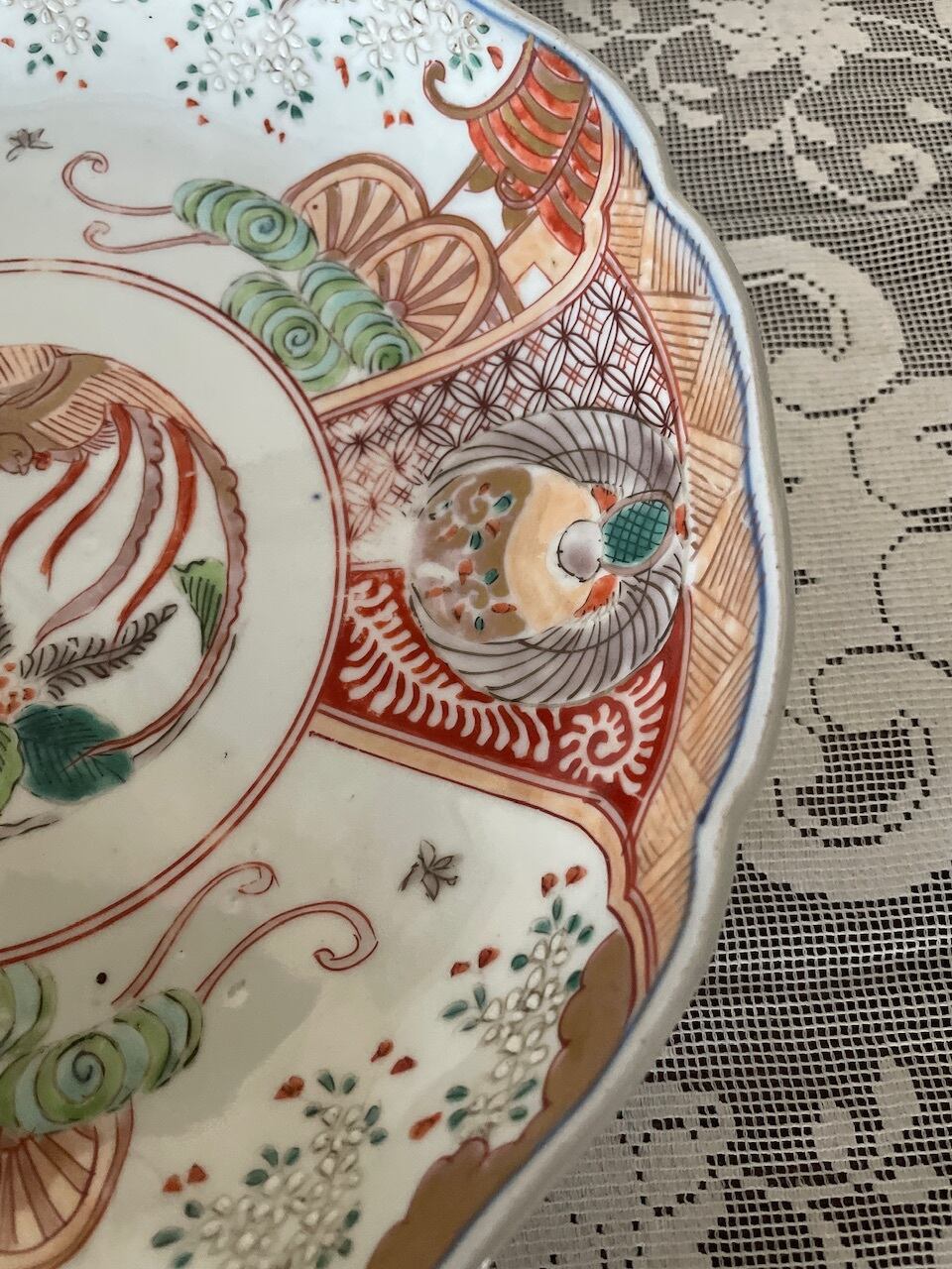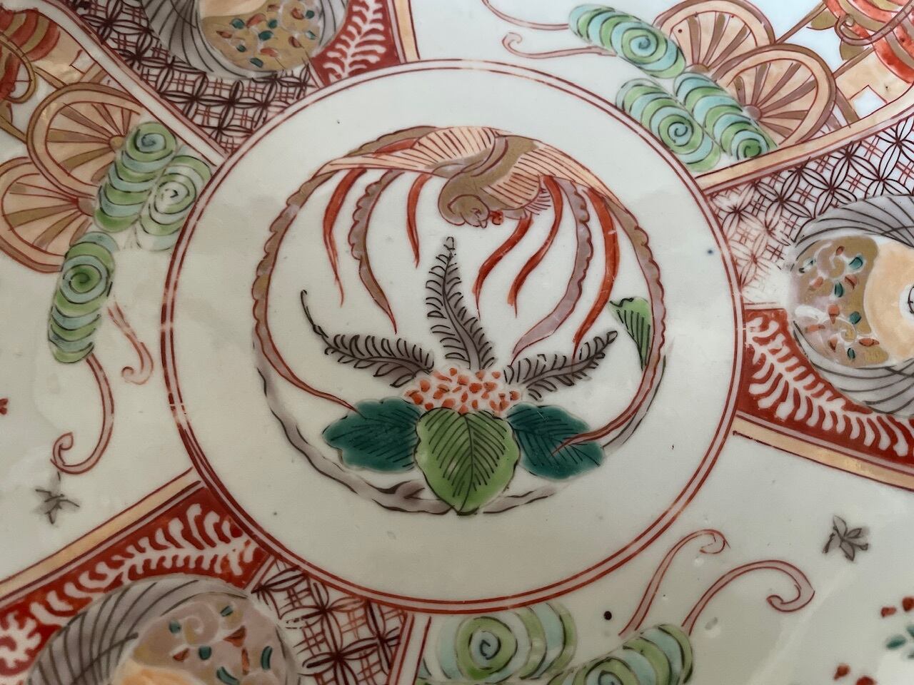 赤、緑、金など多色使いの鮮やかな上絵付けで装飾されています。