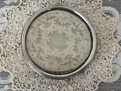 レースのドイリーが入ったが素敵なガラスのサークルトレイです。