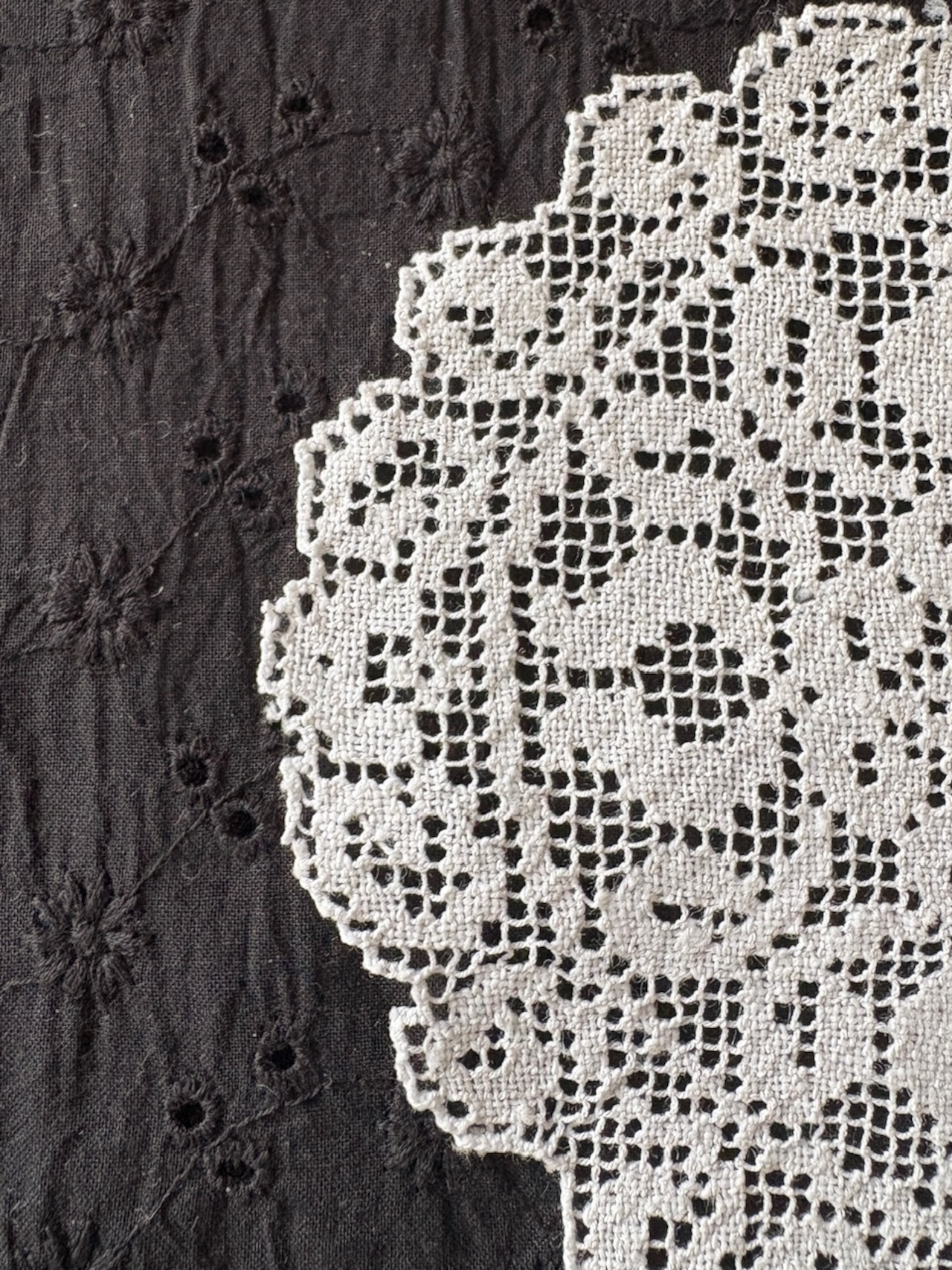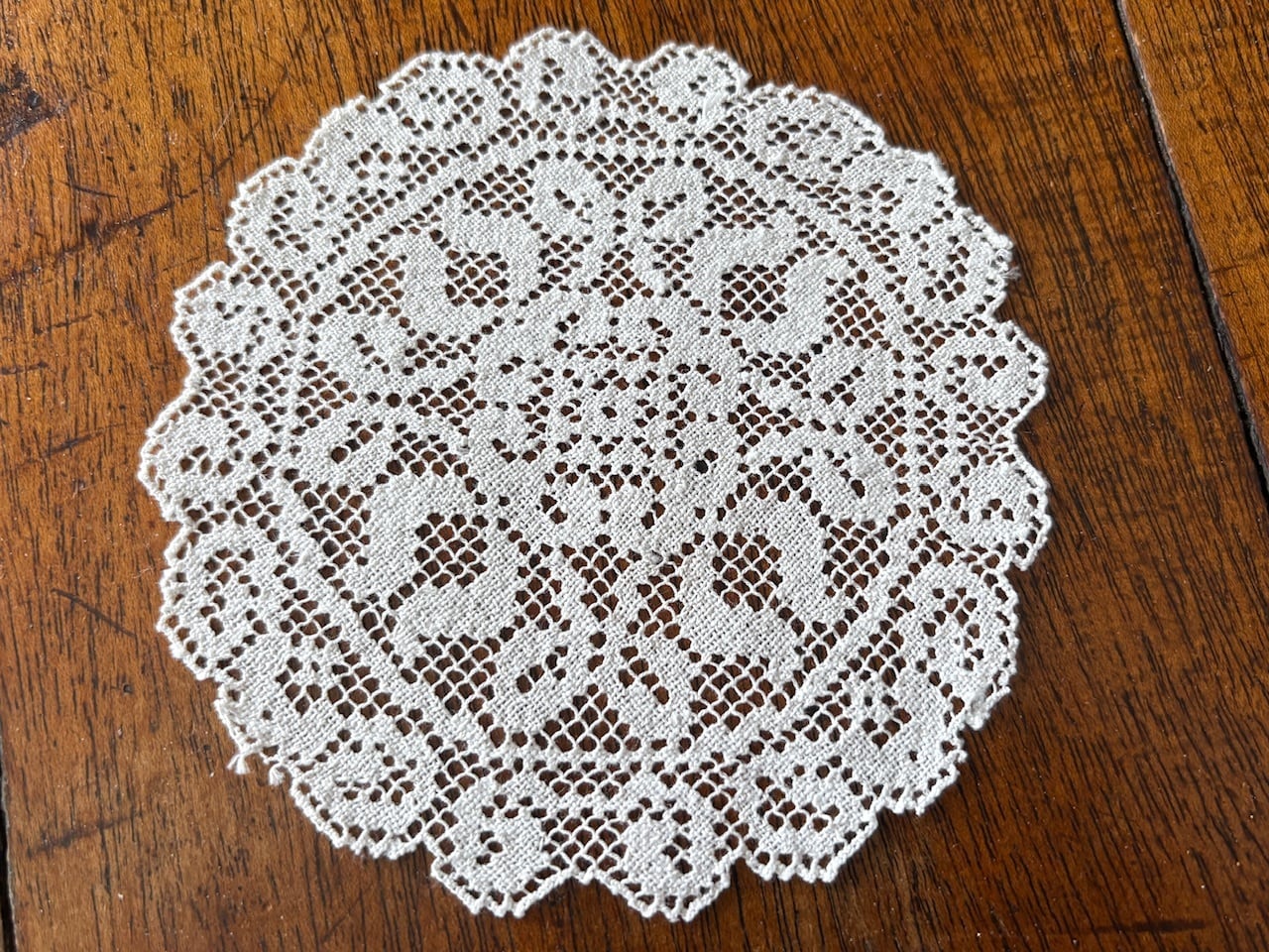 ドイリーとは、花瓶の下に敷いたり、テーブルセンターなどに使ったりする小さめのレースの事。