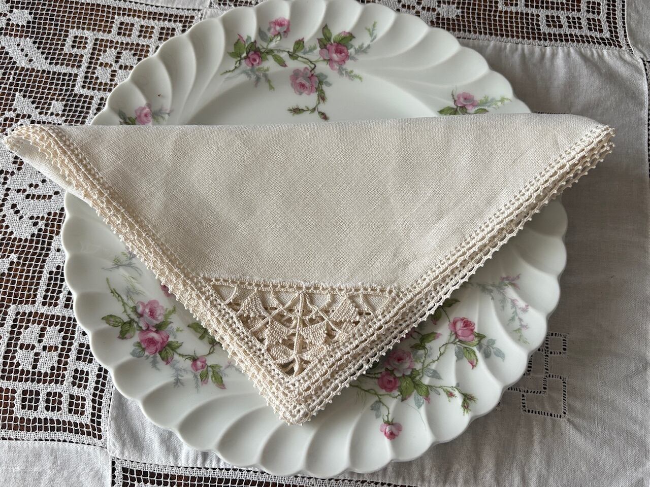 周りはクロッシュレースで編まれています。