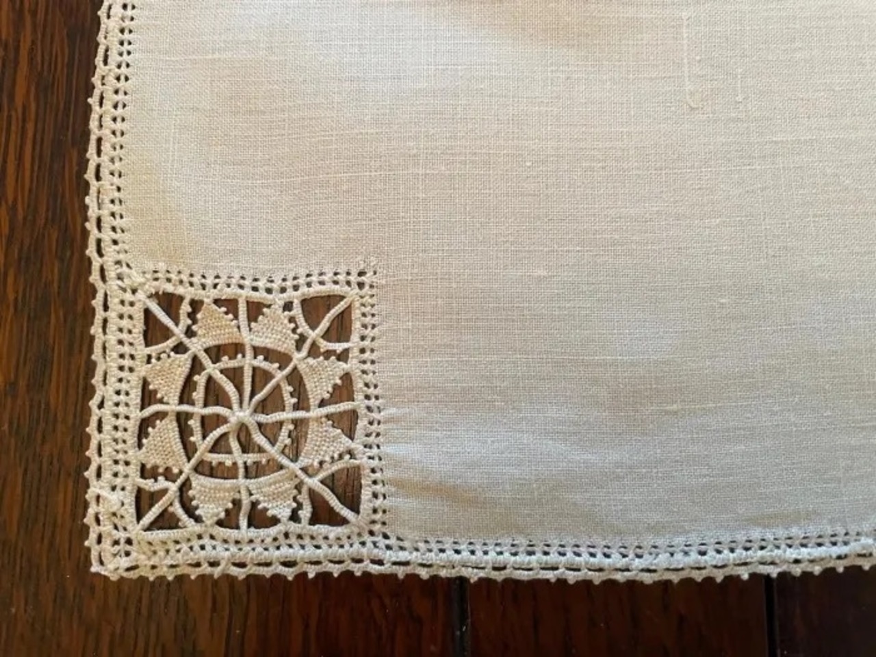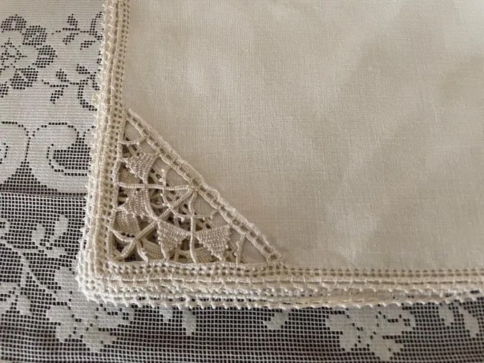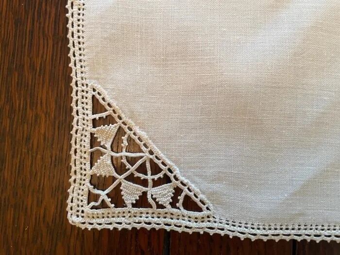 角に刺繍が施されていてエレガントです。