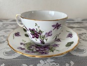 ボーンチャイナにパープル色のスミレが描かれています。