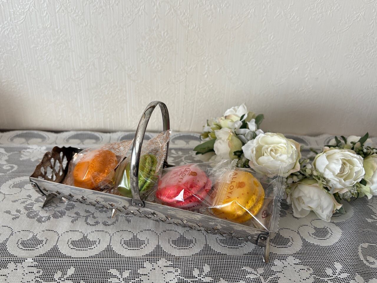 マカロンやビスケットを入れると素敵なお品です。