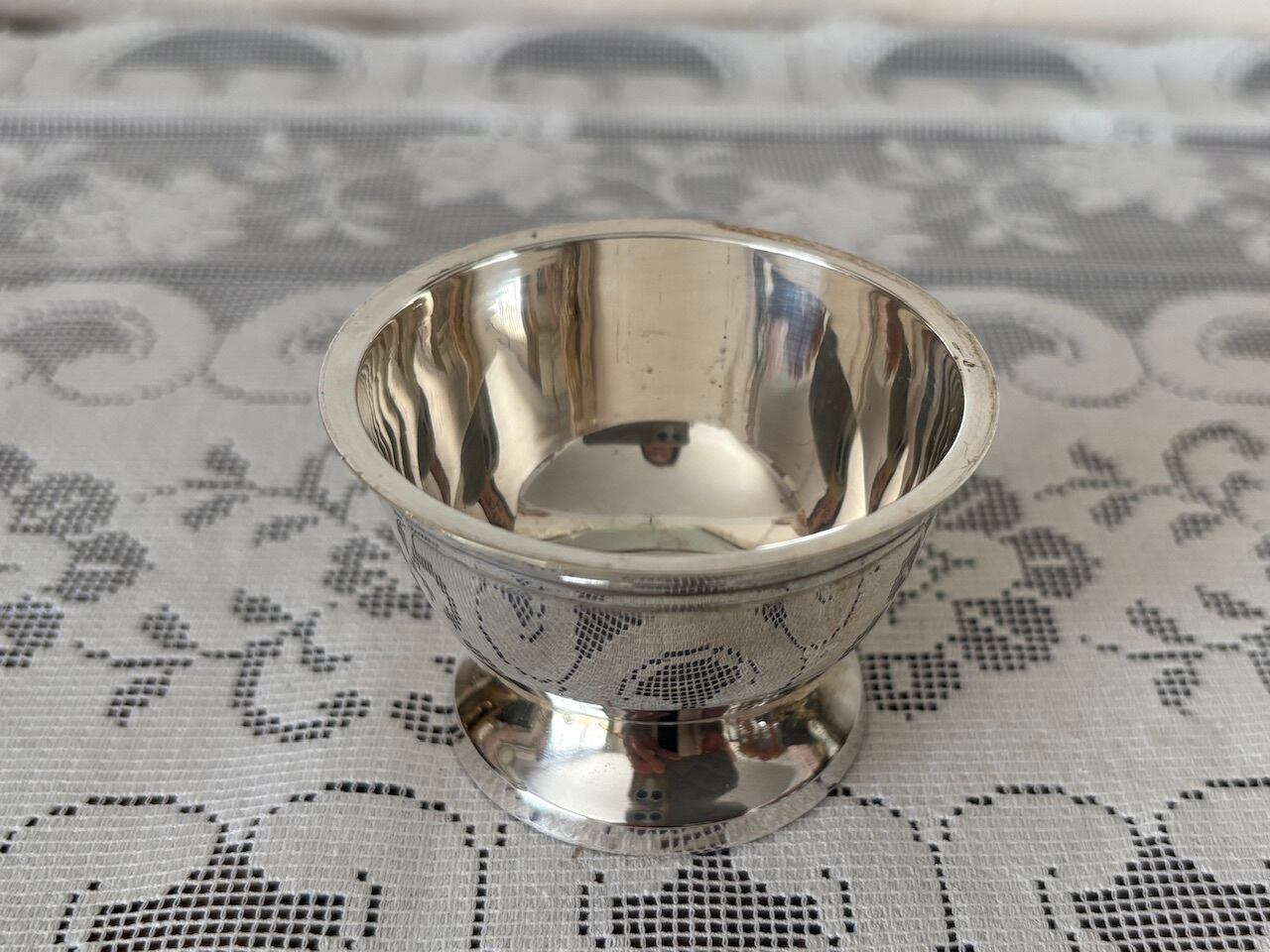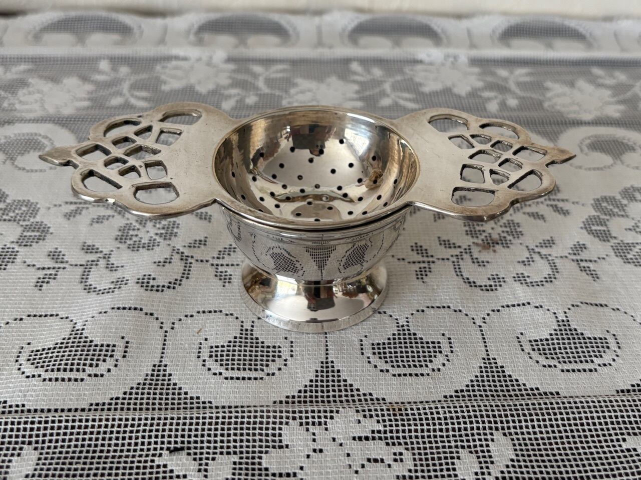 透かし模様がとても魅力的なシルバープレートのティーストレイナーです。