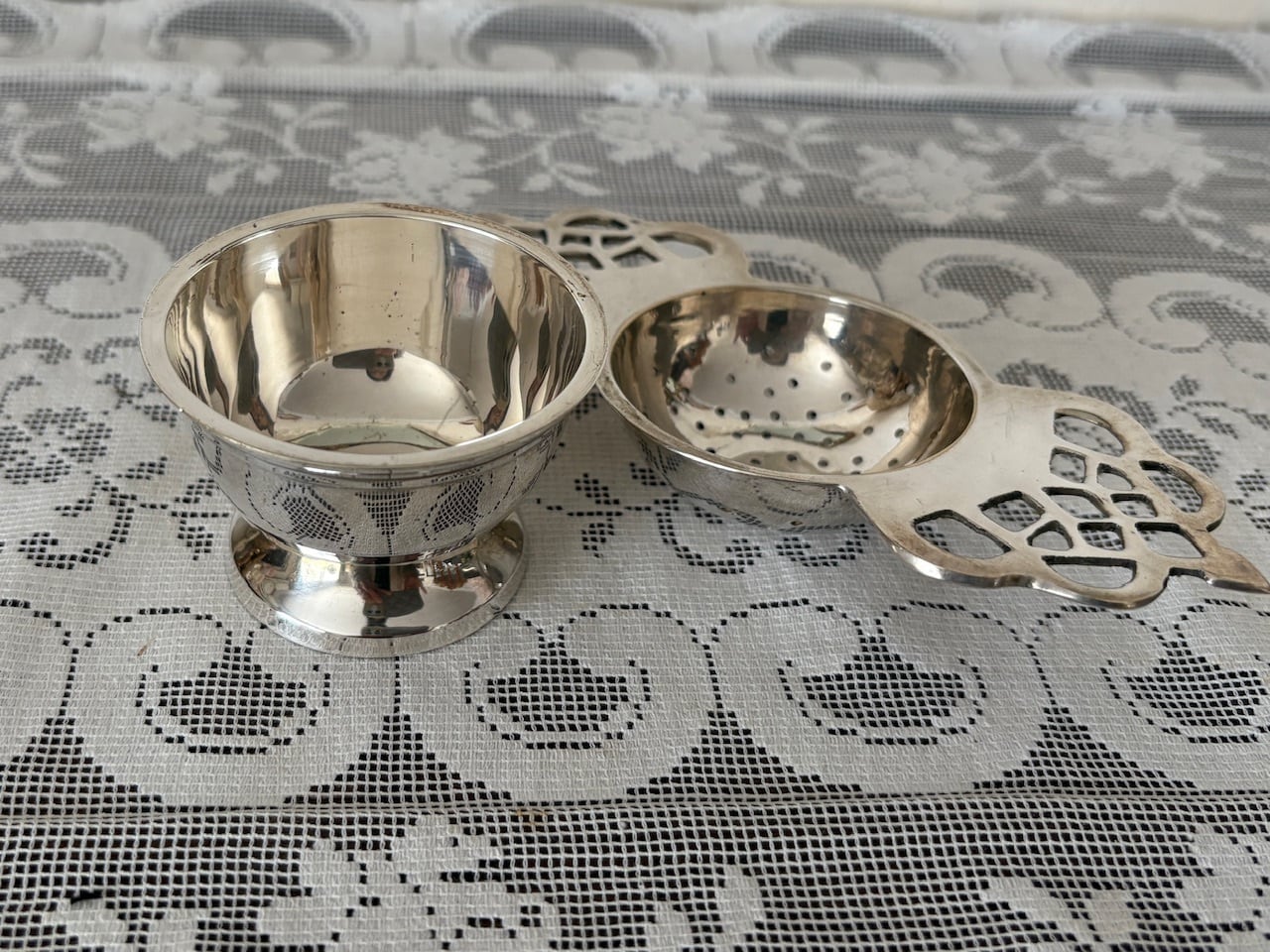 シルバープレート・ティーストレーナー(受け皿付)