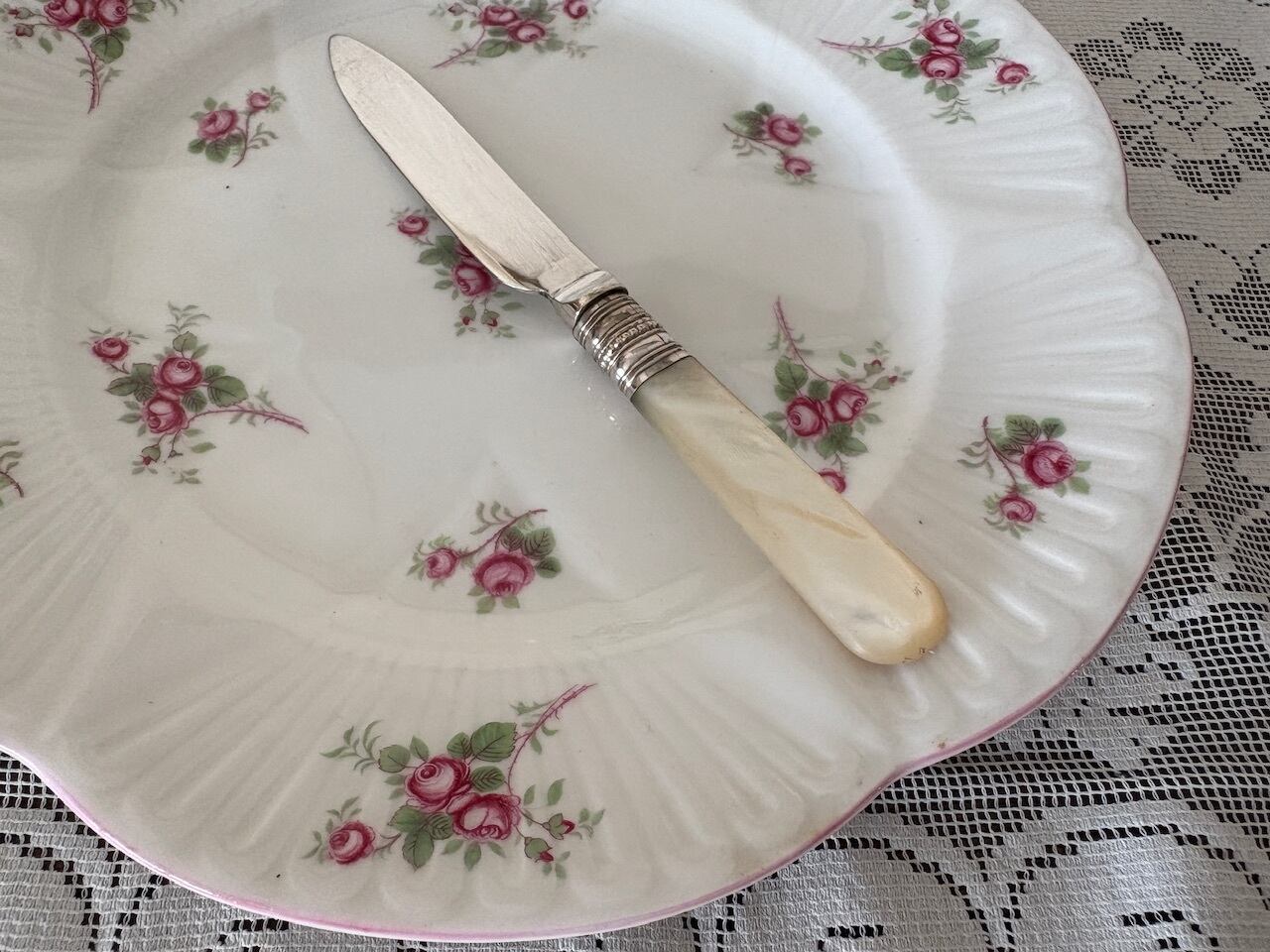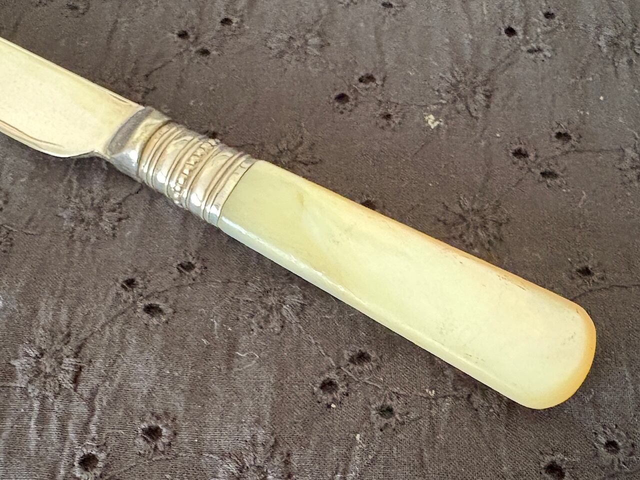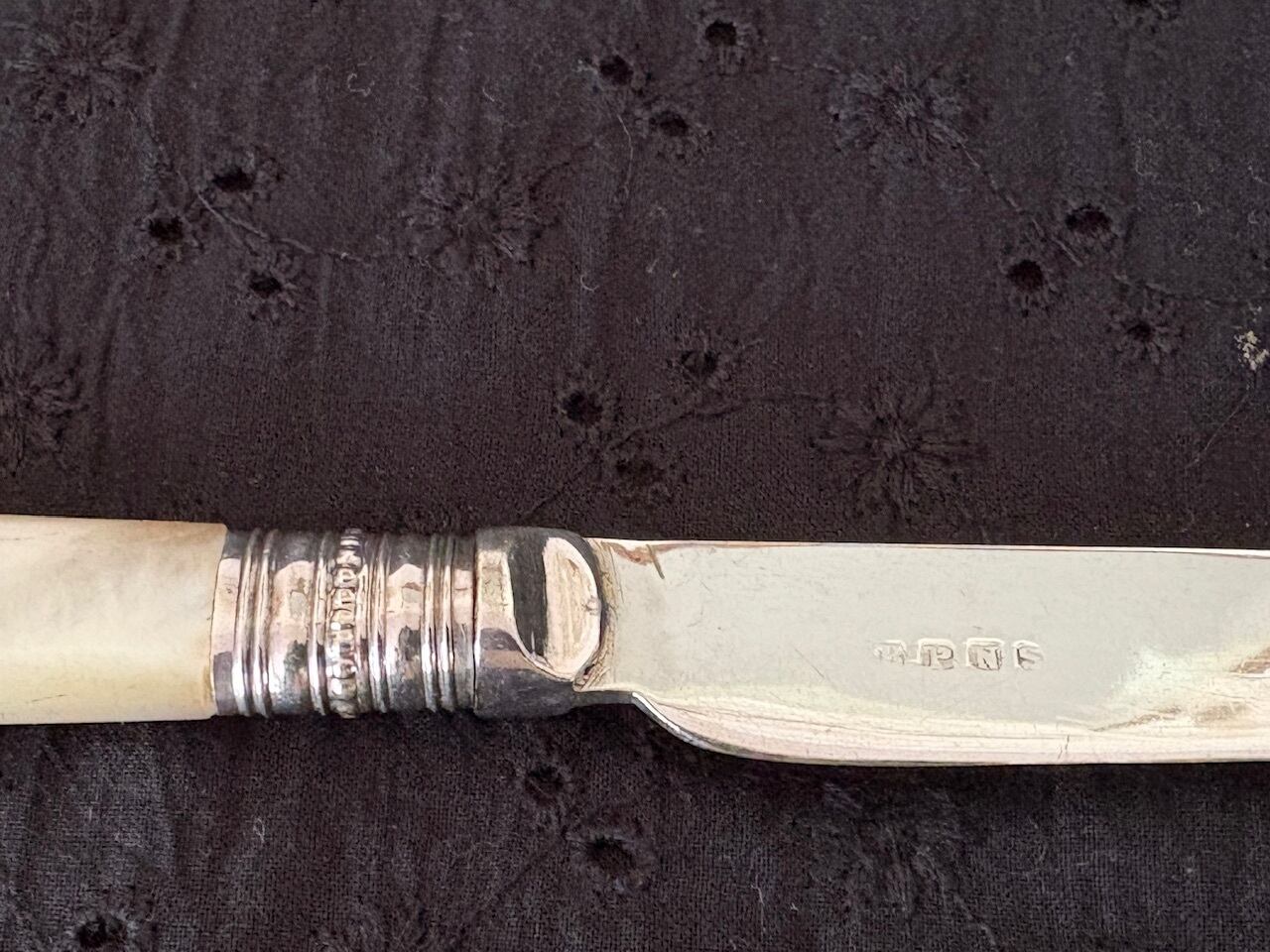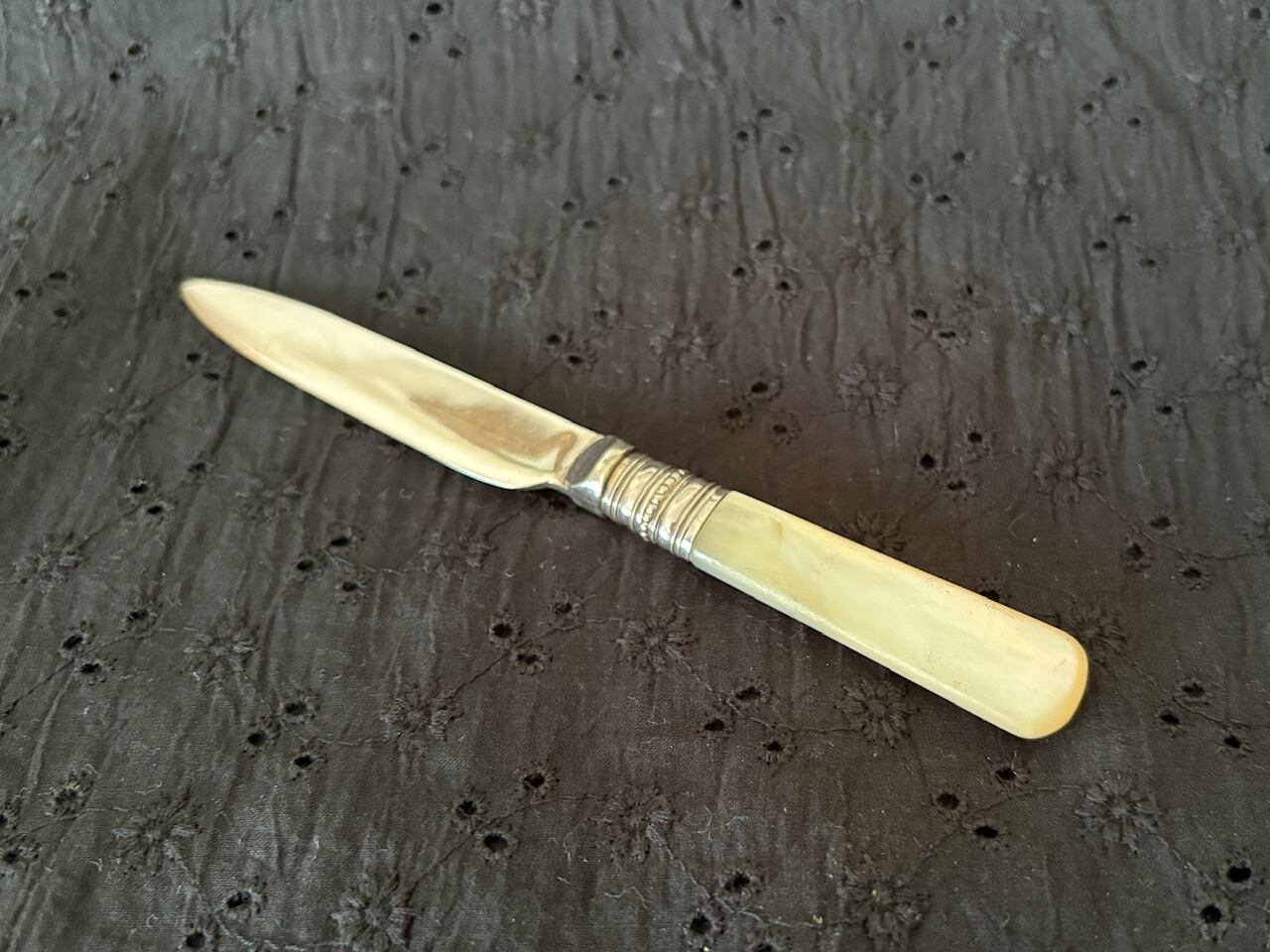 マザーオブパールのハンドルが手に優しい、シルバープレートのフルーツナイフ。