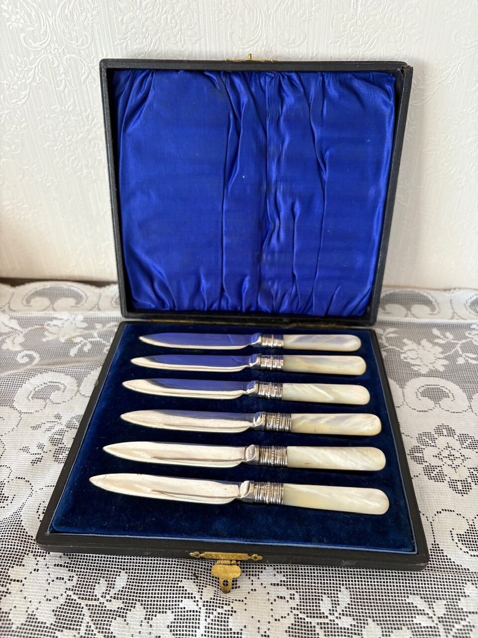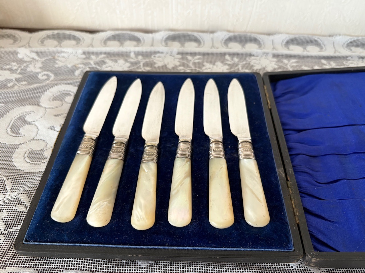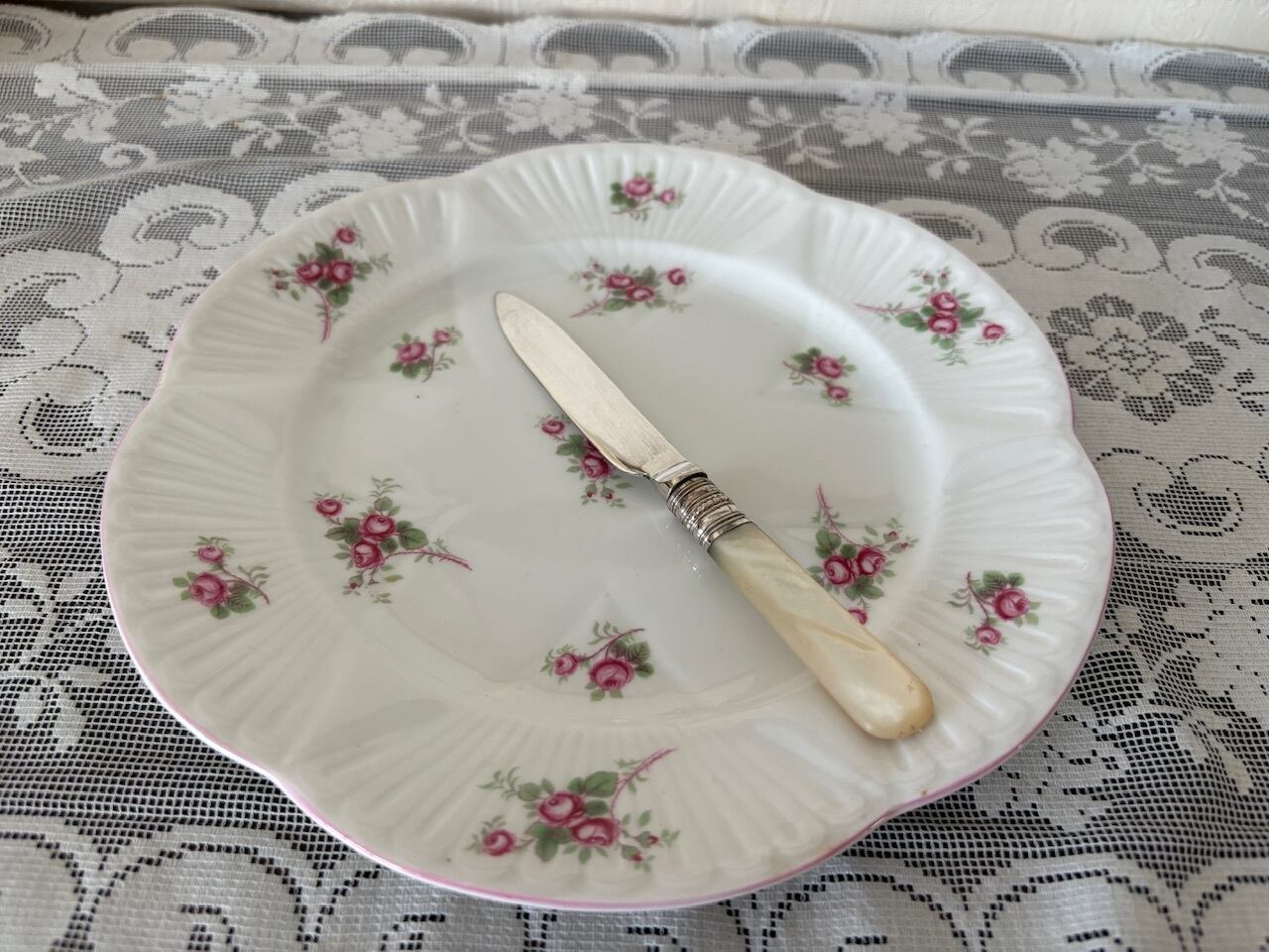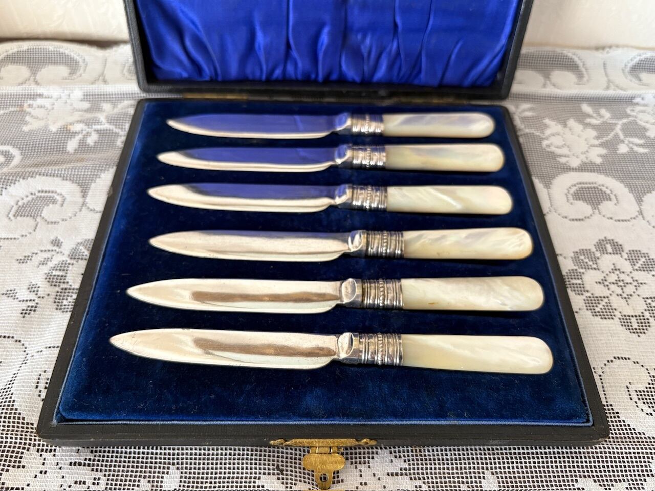マザーオブパールのハンドルが手に優しい、シルバープレートのフルーツナイフ。