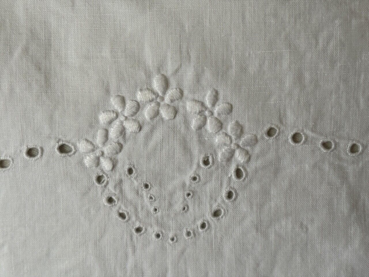 刺繍とカッツトワークが素敵なリネンのティーコゼです。