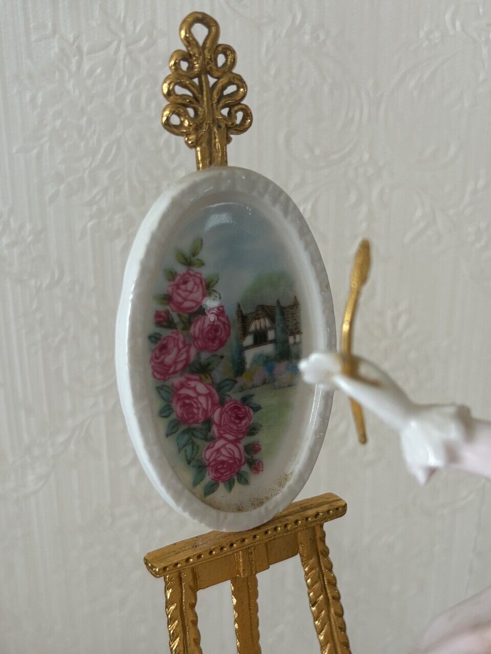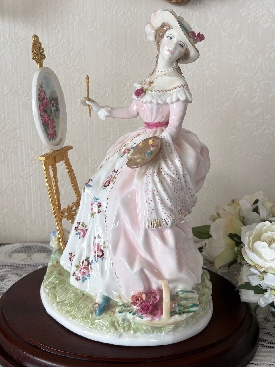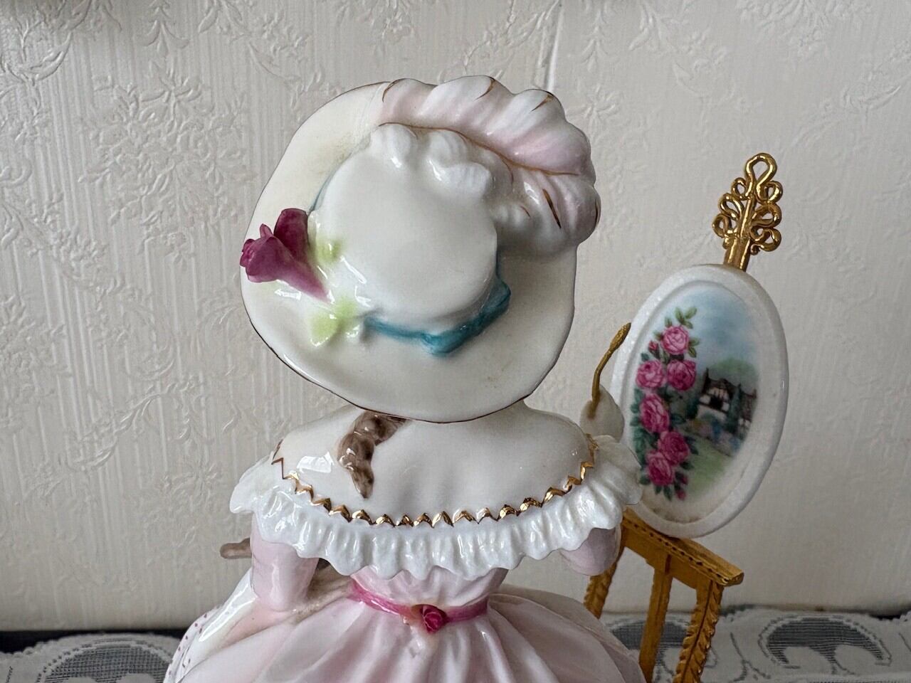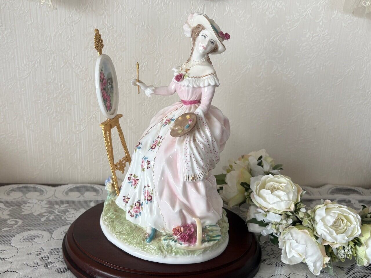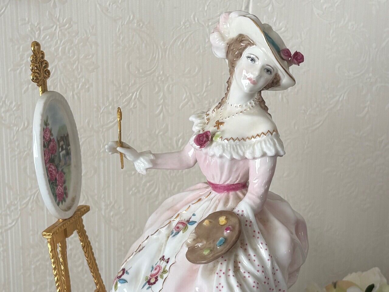 絵画を描くレディは美しく、薔薇のペイントも素敵に描かれています。