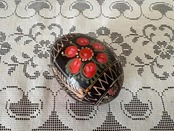 黒のベースに鮮やかな赤やグリーンで描かれています。