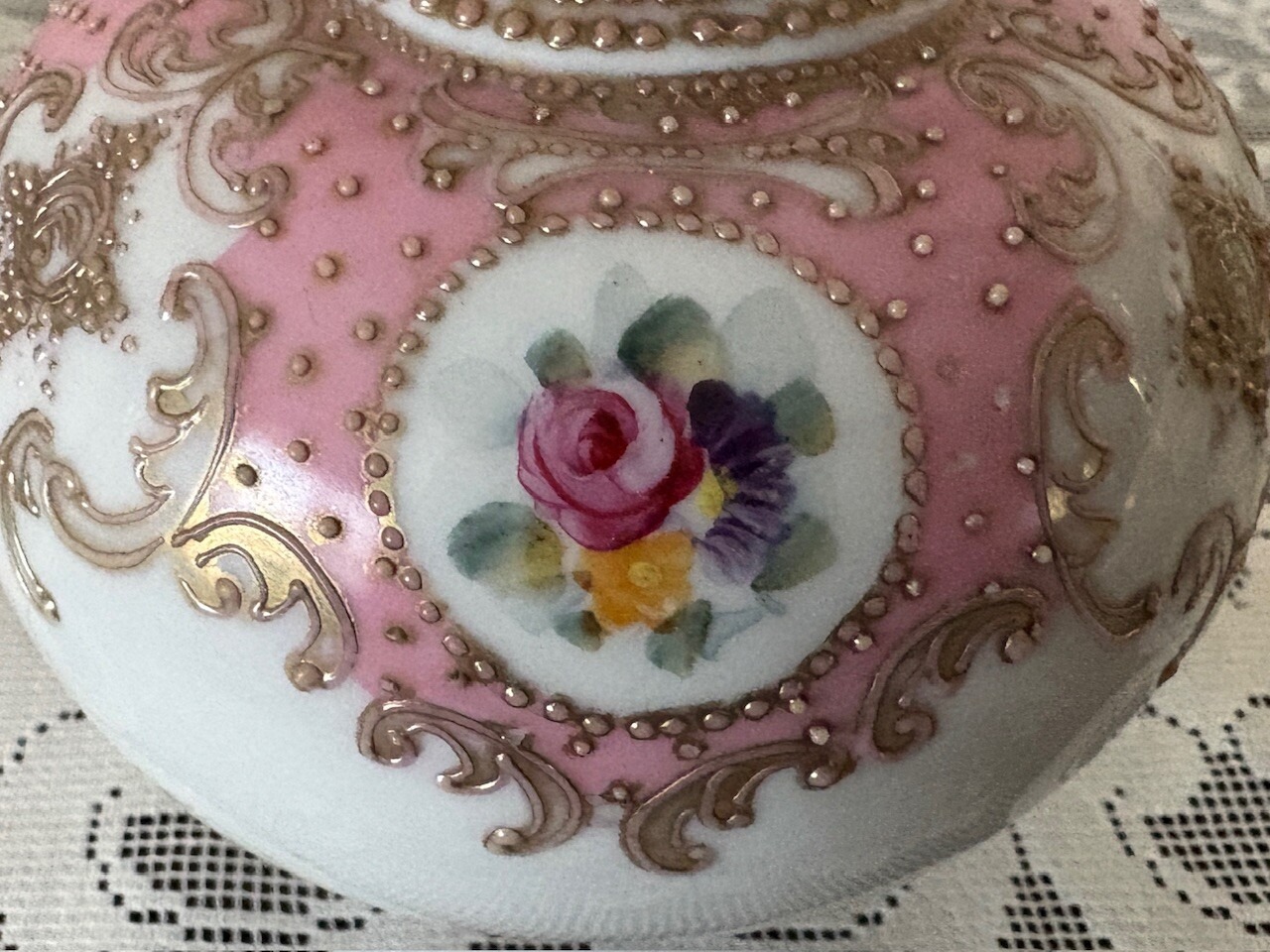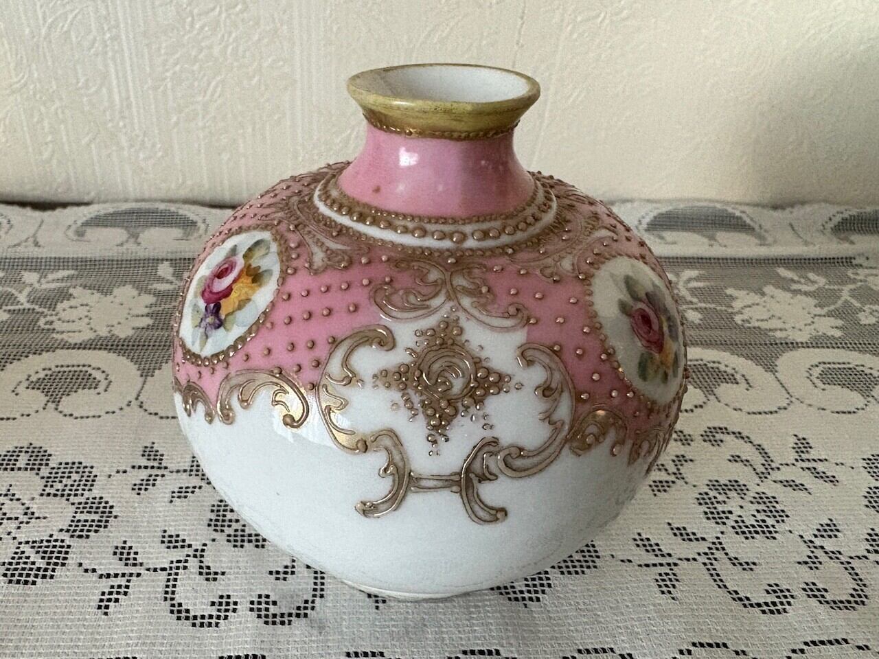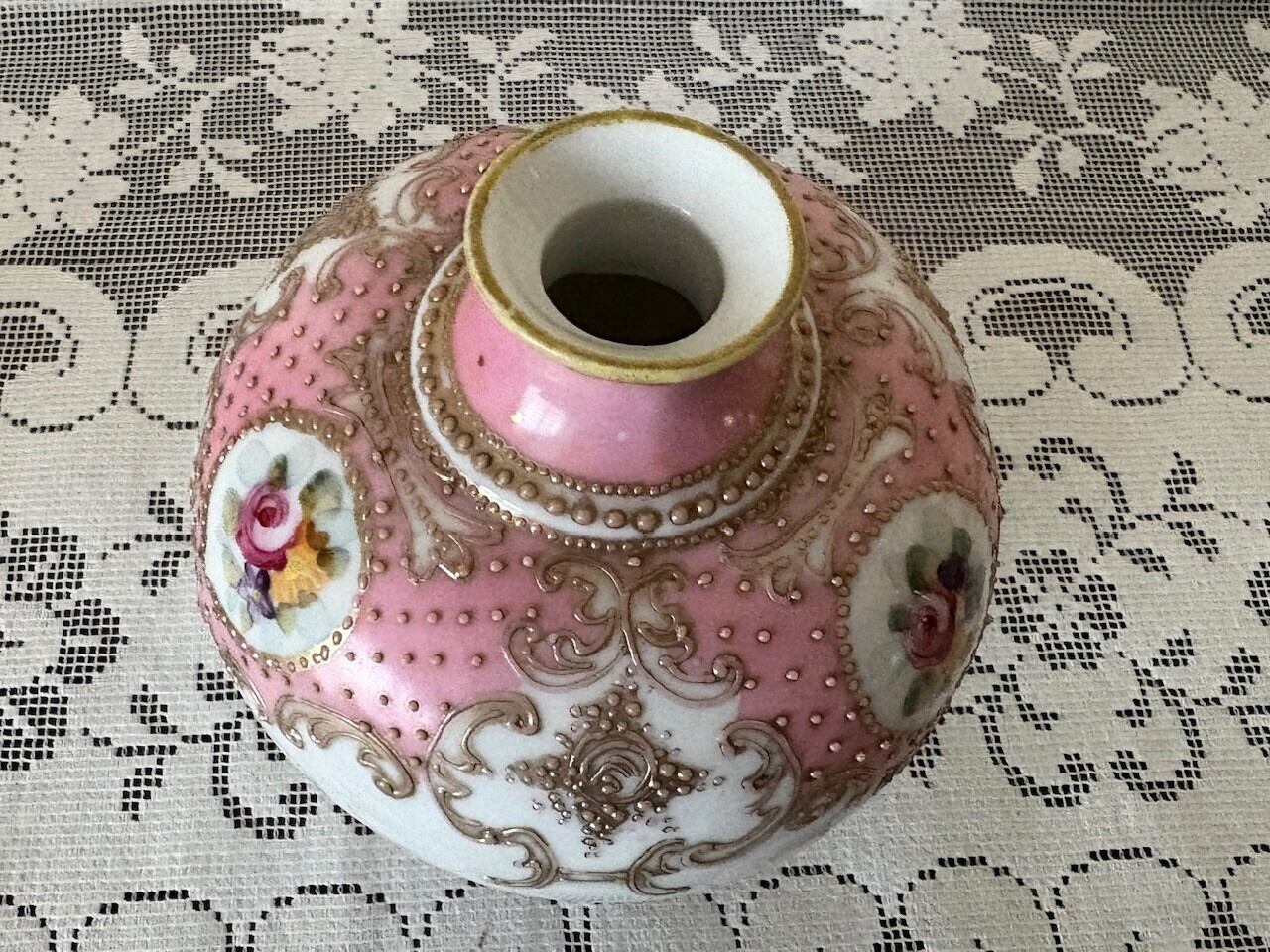 オールドノリタケ薔薇デザインの花瓶。