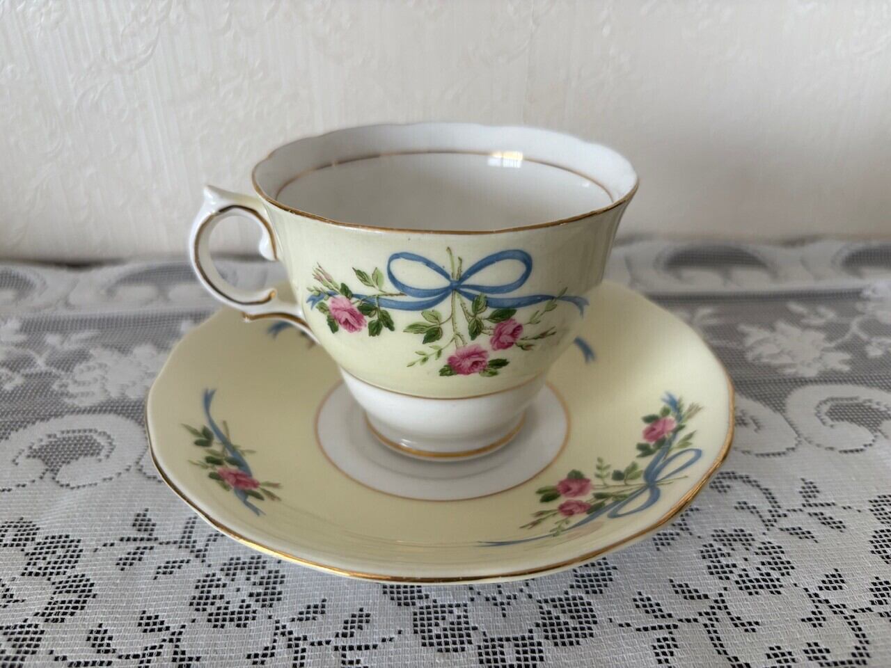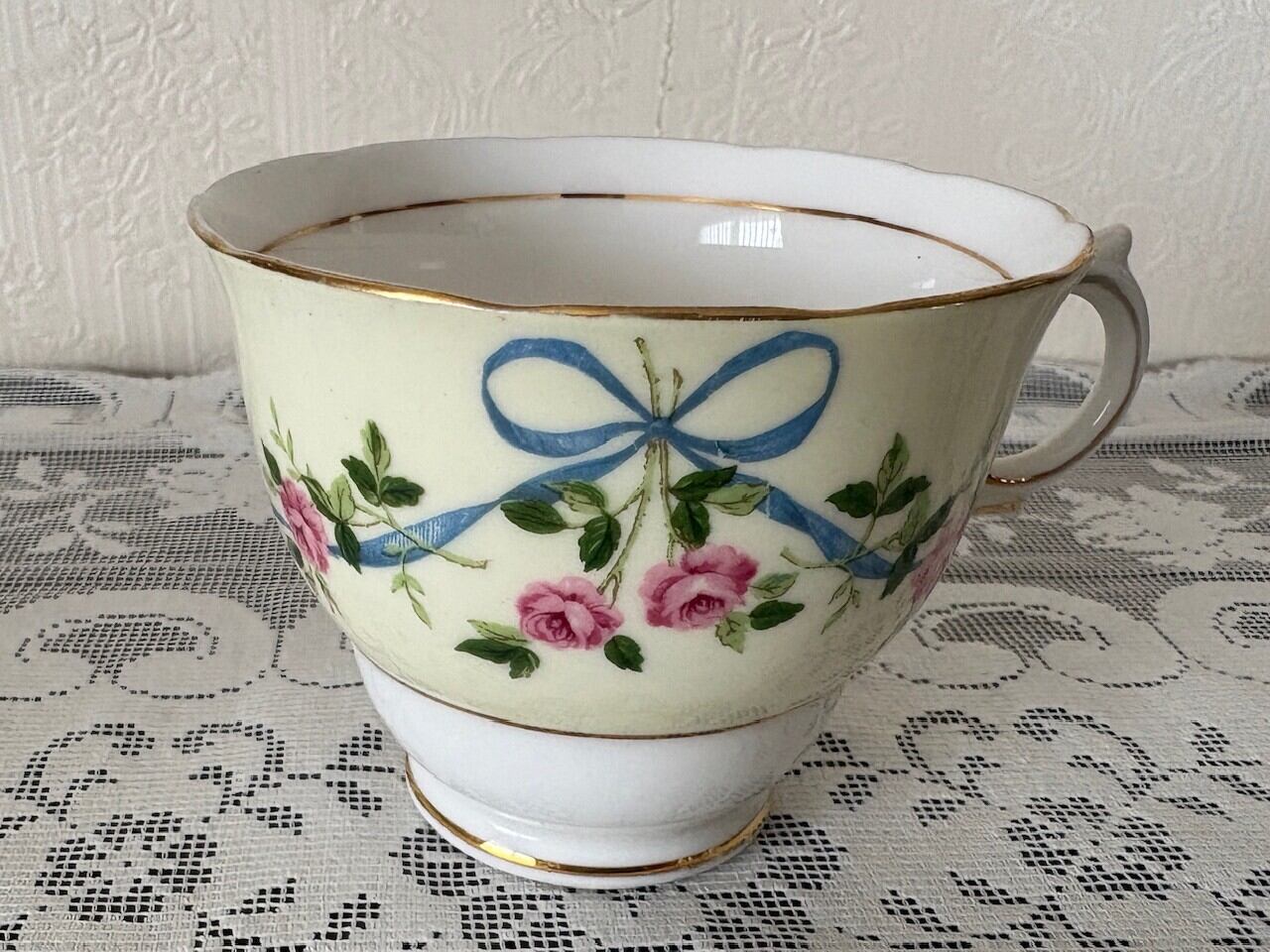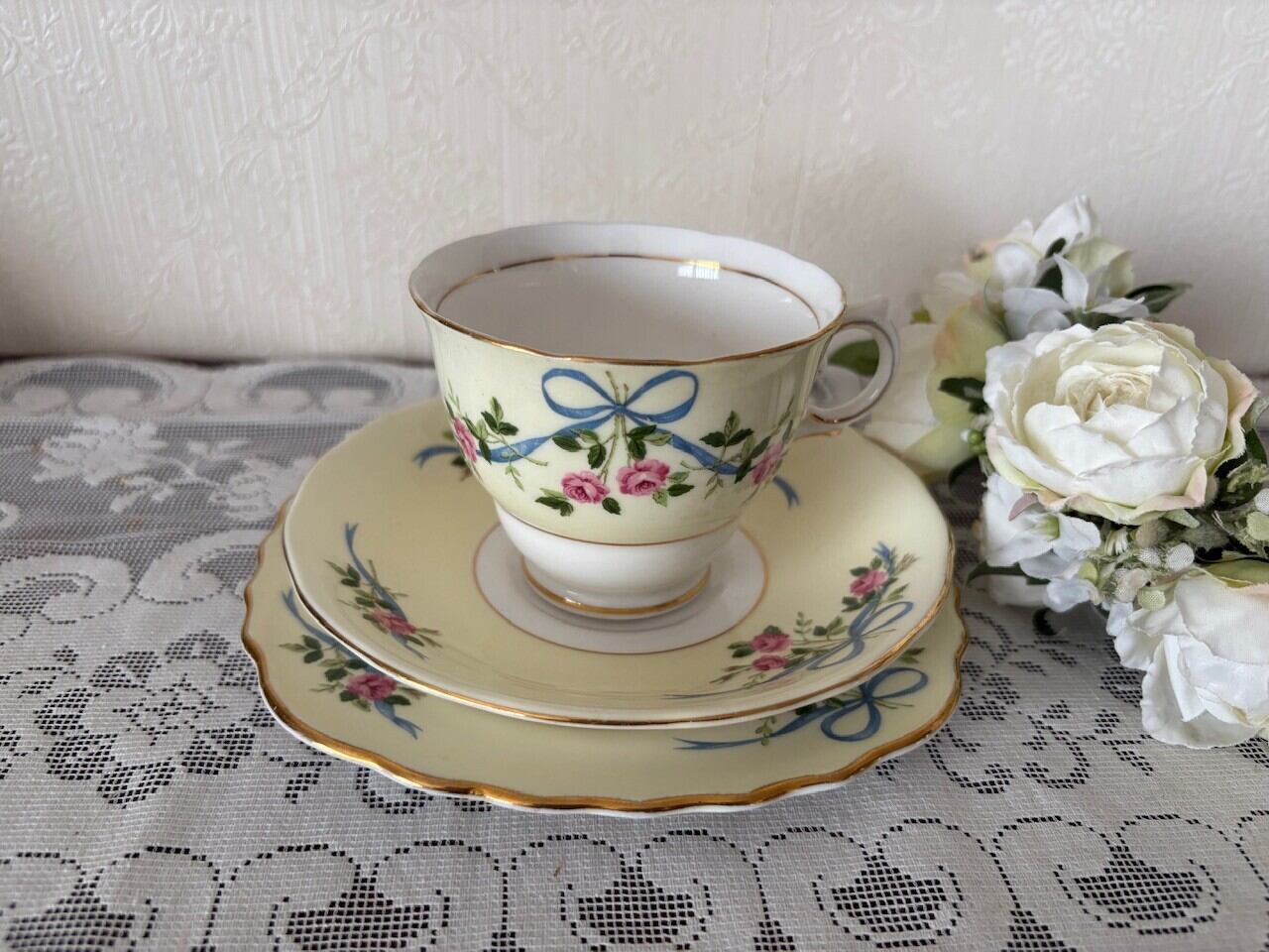 コルクラフのローズ&リボンのトリオ(カップ、ソーサー、ケーキプレート)