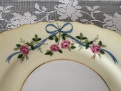 イエローのベースに可愛いらしいく上品なピンクのローズ&ブルーのリボンのデザインです。