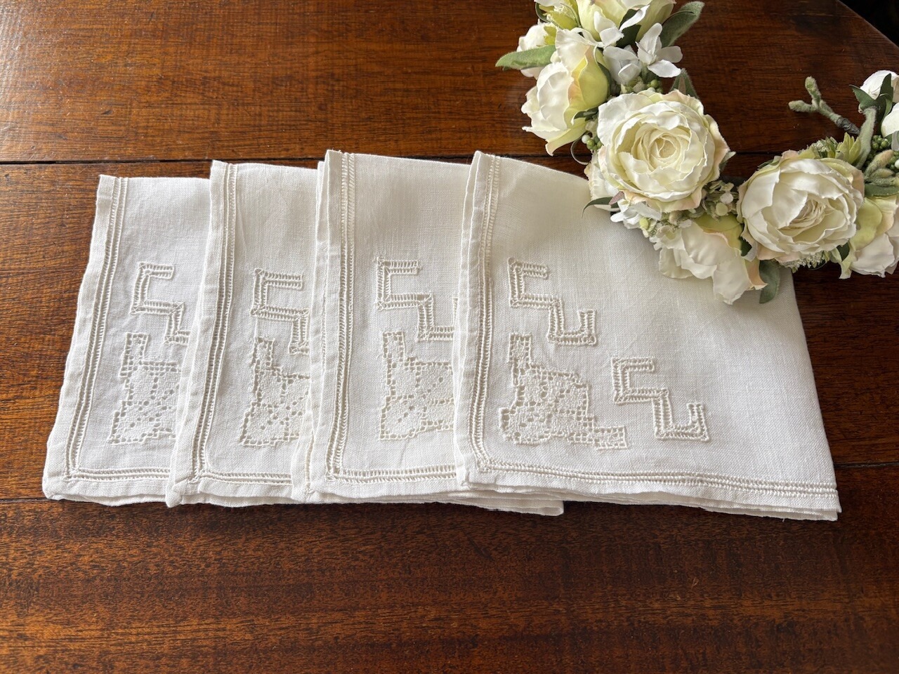 リネン・ドロンワーク ティーナフキン4枚セット