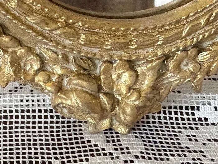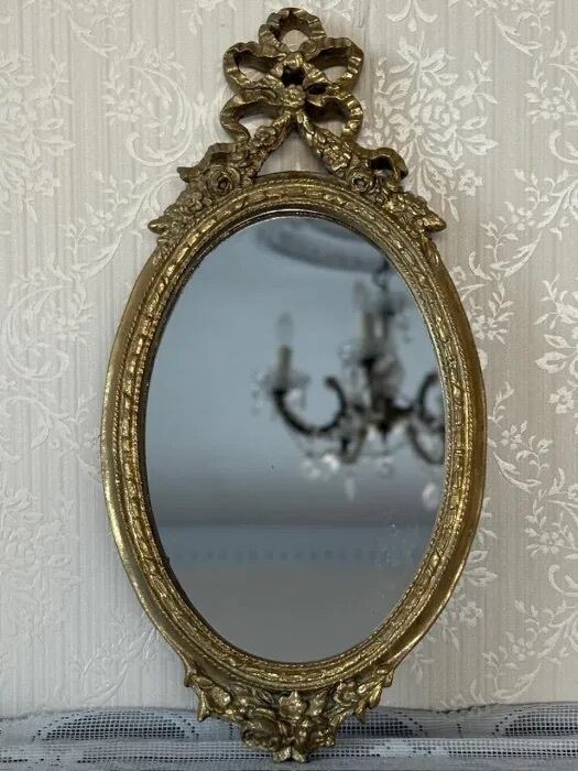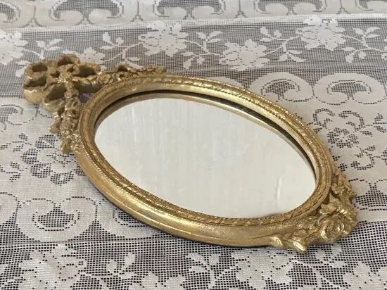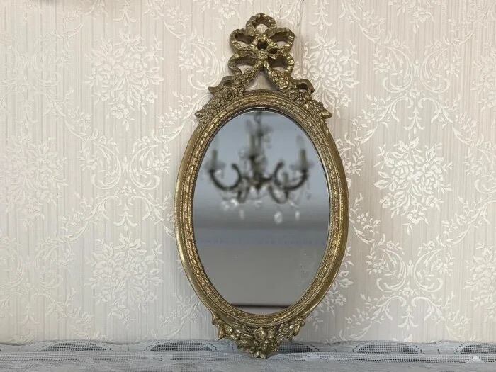 薔薇とおリボンをデコレーションしたクラシカルでお洒落なオーバル型の壁掛けミラー。