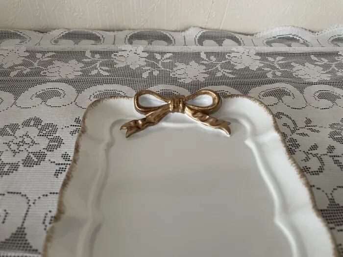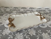 大きなリボンがお洒落なスクエア型のミニトレイ。