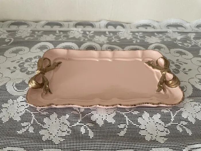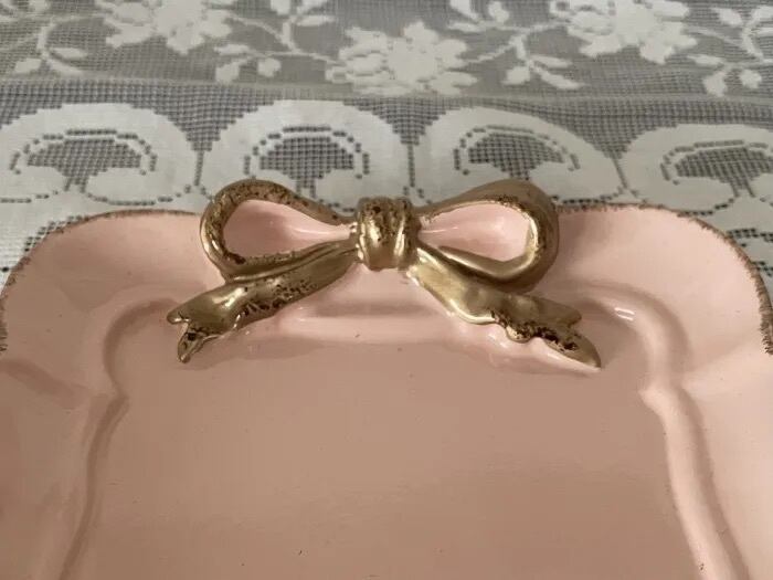 大きなリボンがお洒落なスクエア型のミニトレイ。