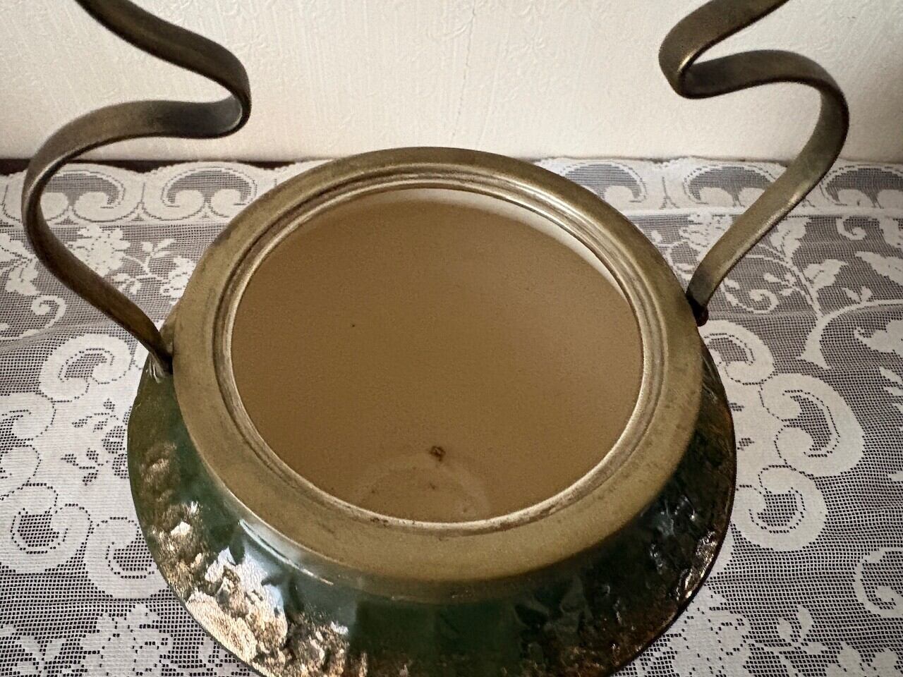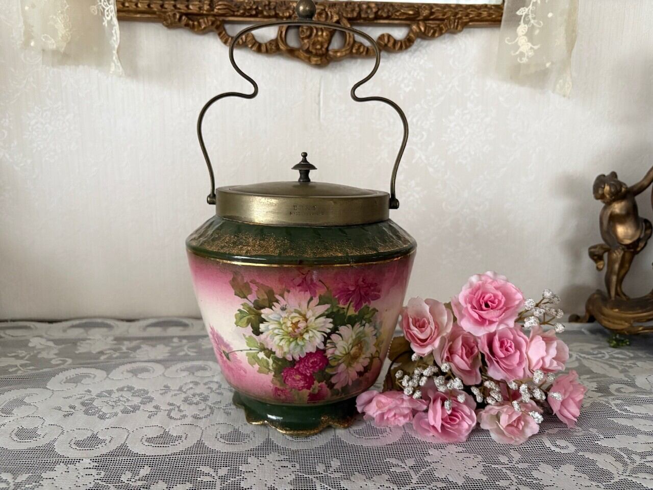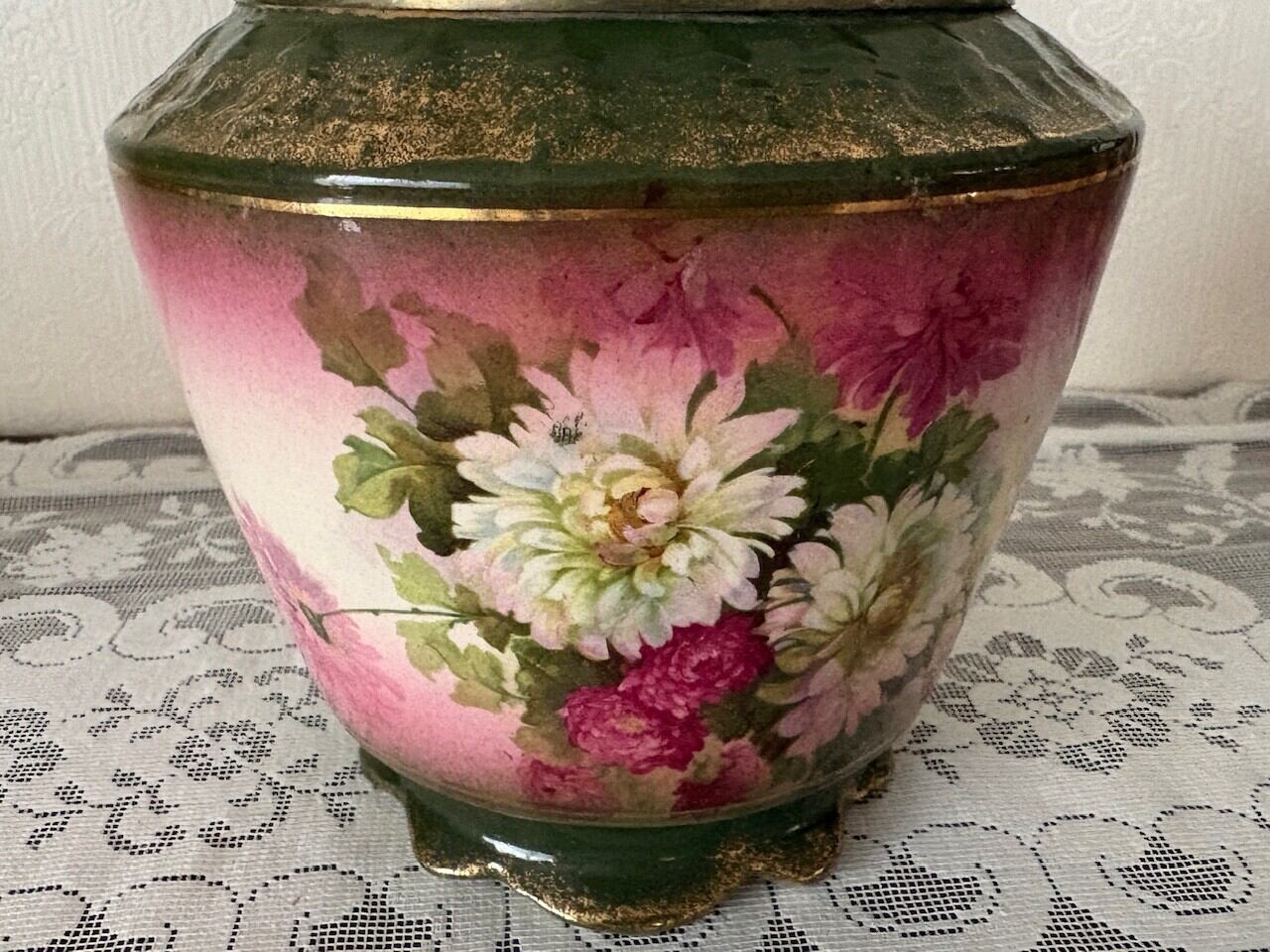 グリーンのベースに金彩を吹きかけたクラッシックなデザインは、当時流行っていたジャポニズム(日本趣味)の趣が感じられます。
