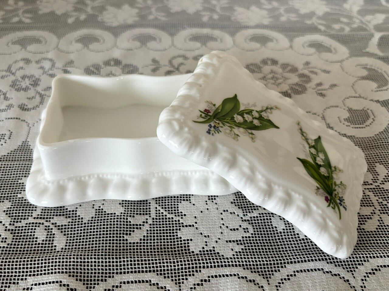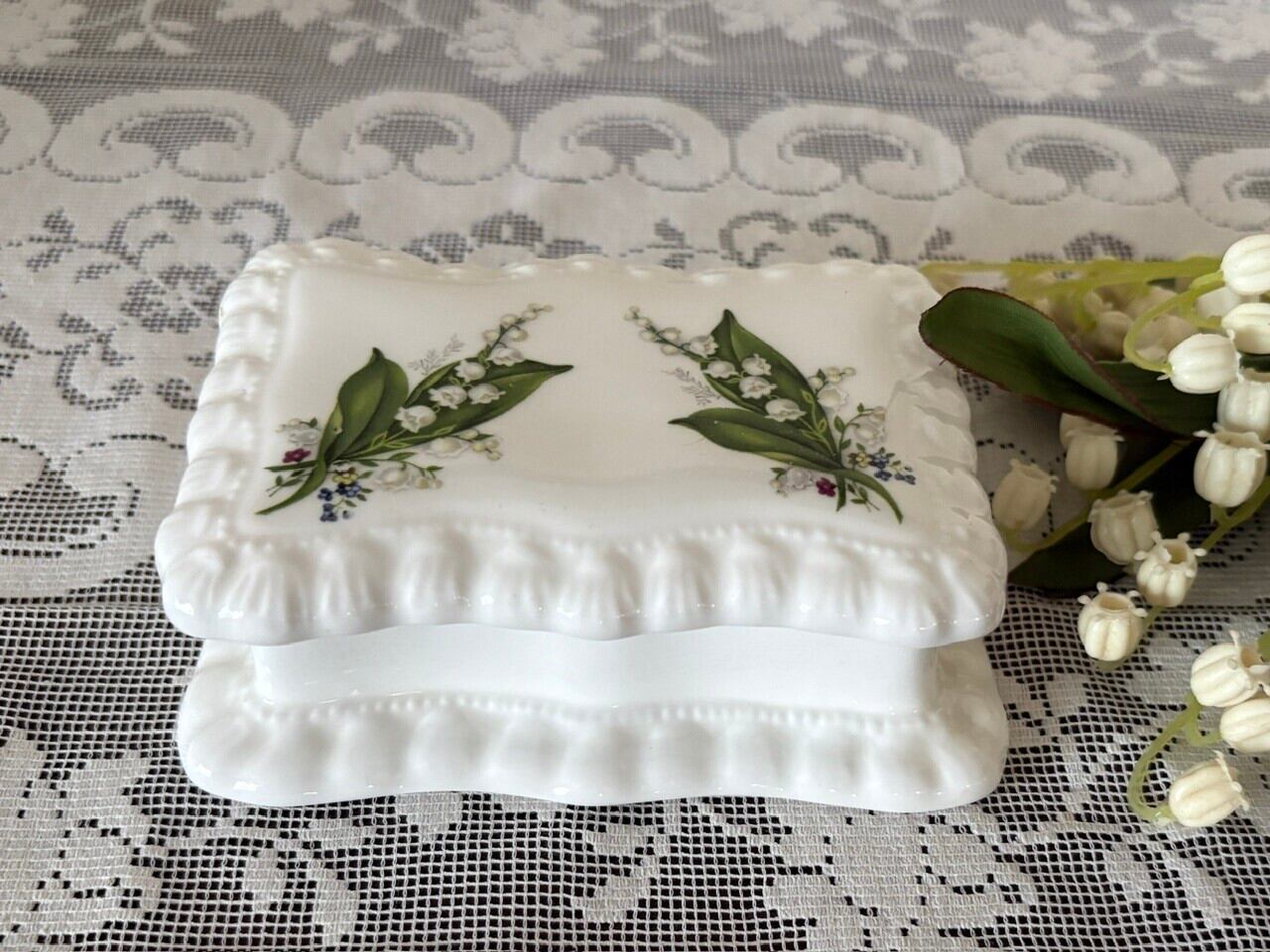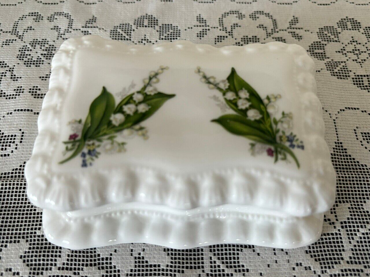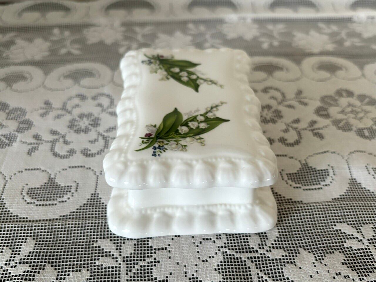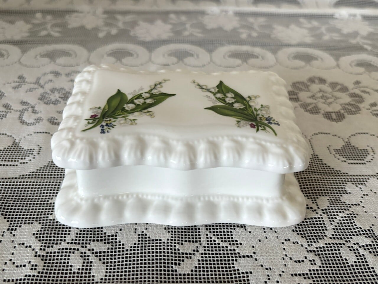 ボーンチャイナに優しい鈴蘭の花がデザインされています。