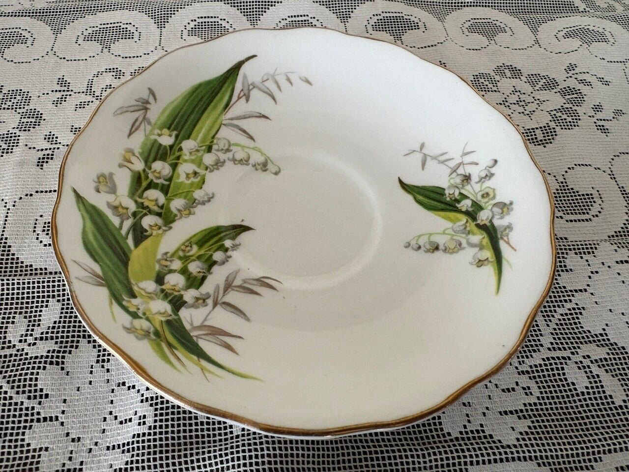 ボーンチャイナに優しい鈴蘭の花がデザインされています。