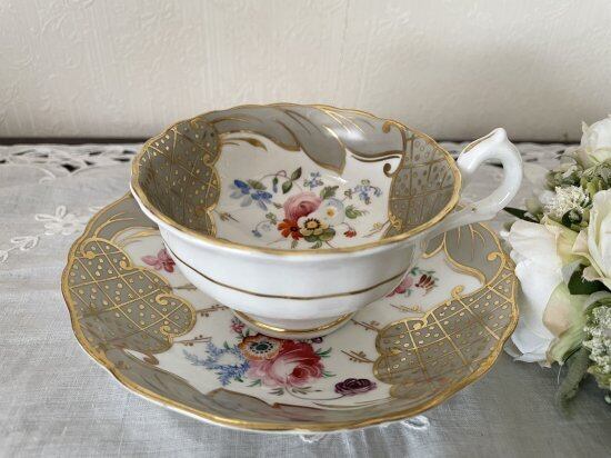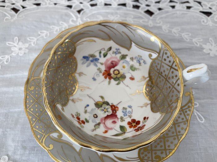 カップの中に描かれた手描きの花はとても繊細で金彩も豪華で、技術のある職人が作られたことが分かります。