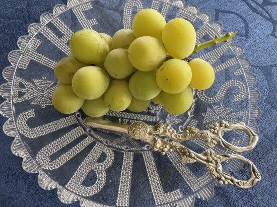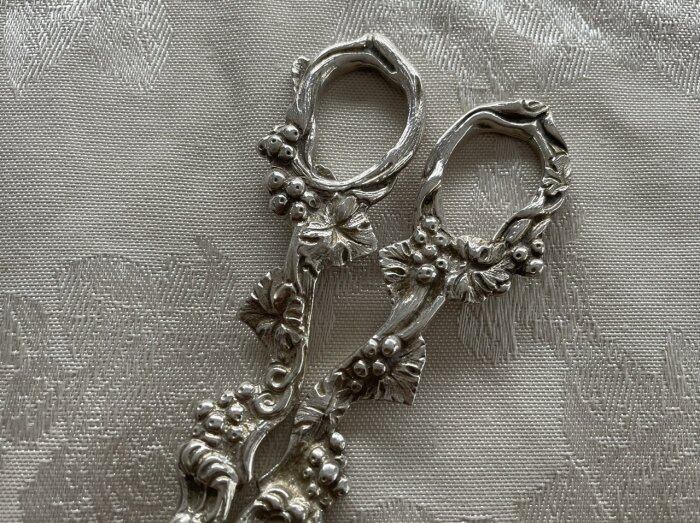 ハンドル部分に葡萄のモチーフが装飾されていて優美です。