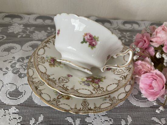 1900年前期、英国 ロイヤルドルトン社の花籠とローズのティートリオです。