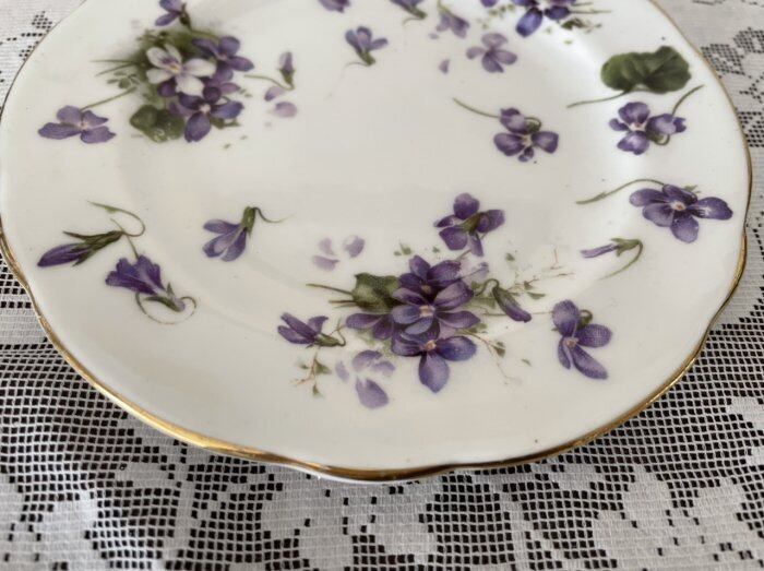 ボーンチャイナにパープル色のスミレが描かれています。