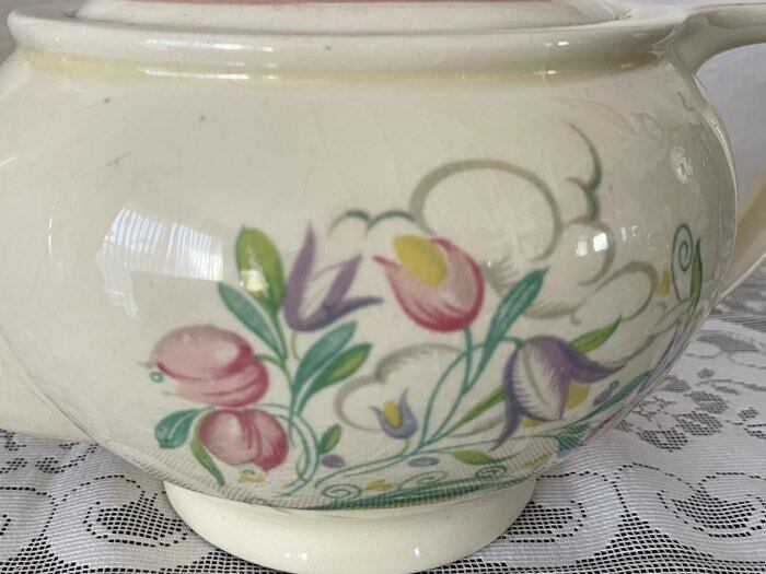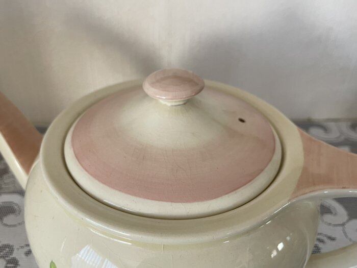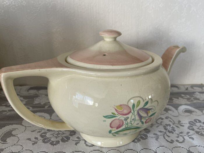 スージークーパー「ドレスデンスプレイ」ピンクのティーポットです。