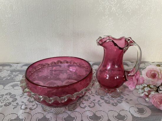 ヴィクトリアン時代のクランベリーガラスはテーブルに華を添える人気のガラスです。