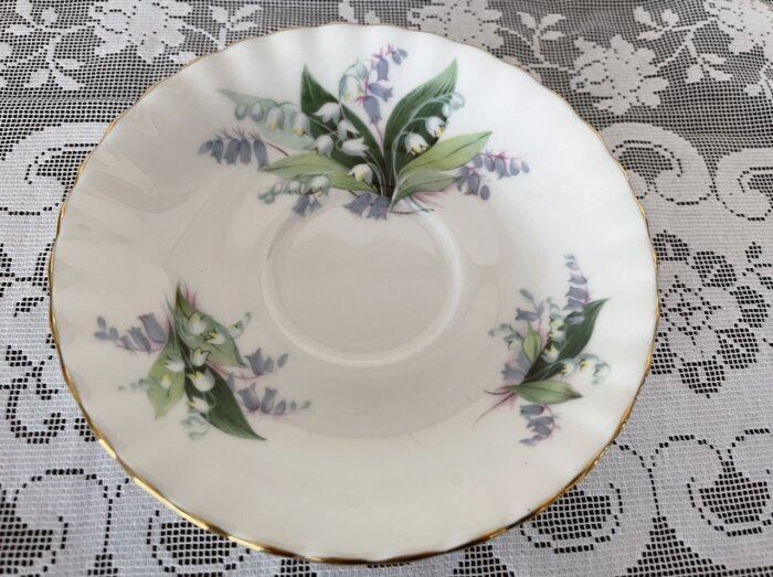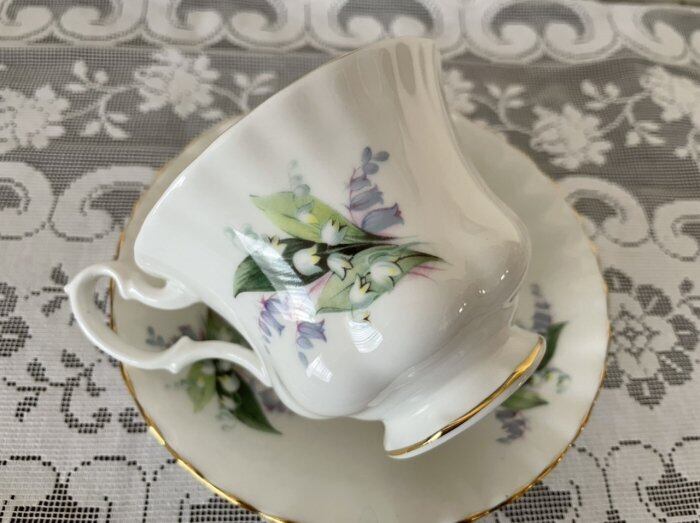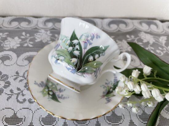 ボーンチャイナに優しい鈴蘭の花がデザインされています。