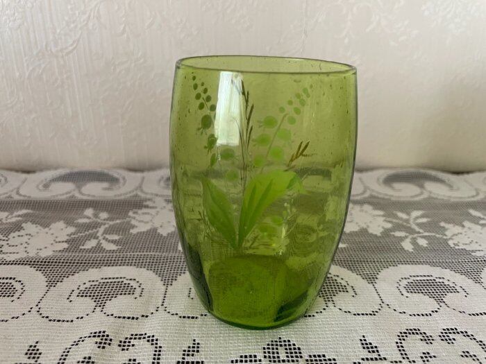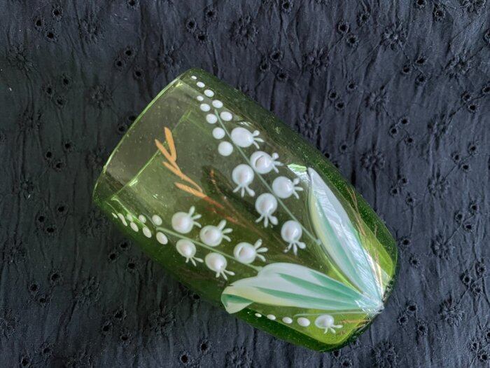 ヴァセリンガラスの鈴蘭のペイントが素敵なグラスです。