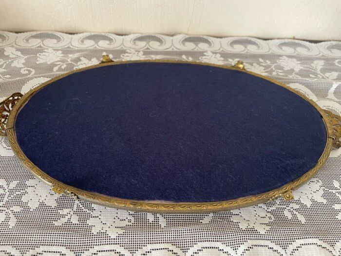 プティポワンの刺繍が素敵なガラスのドレッシングトレーです。