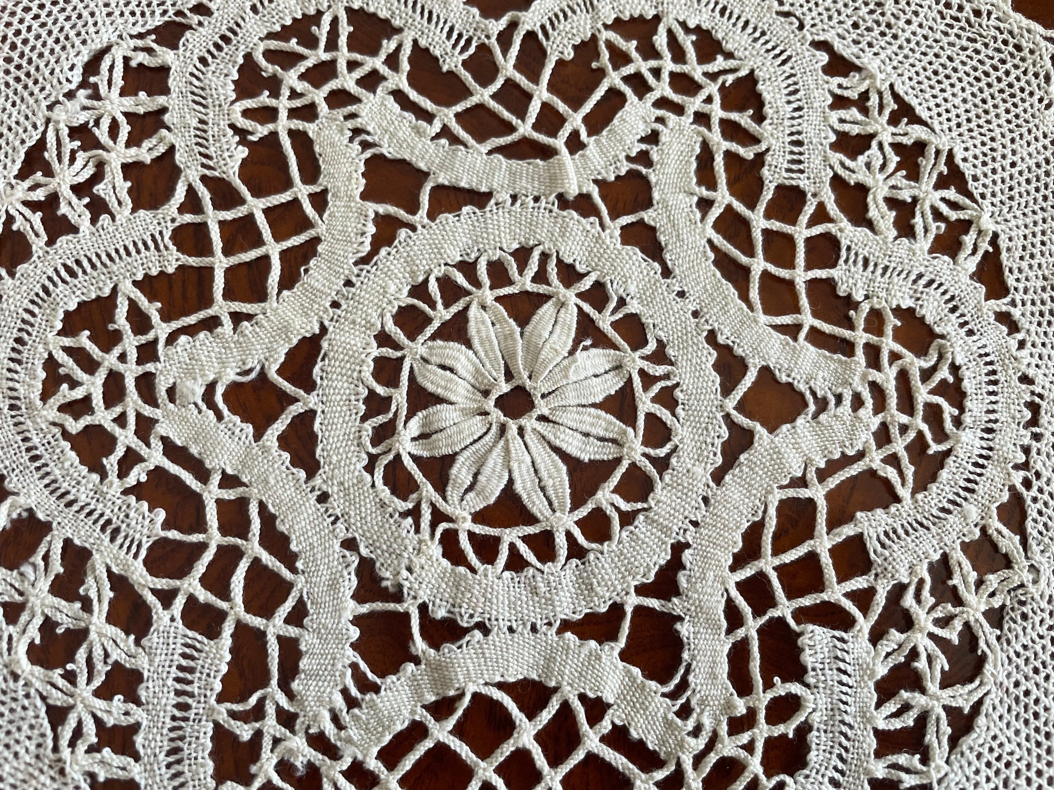 ドイリーとは、花瓶の下に敷いたり、テーブルセンターなどに使ったりする小さめのレースの事。
