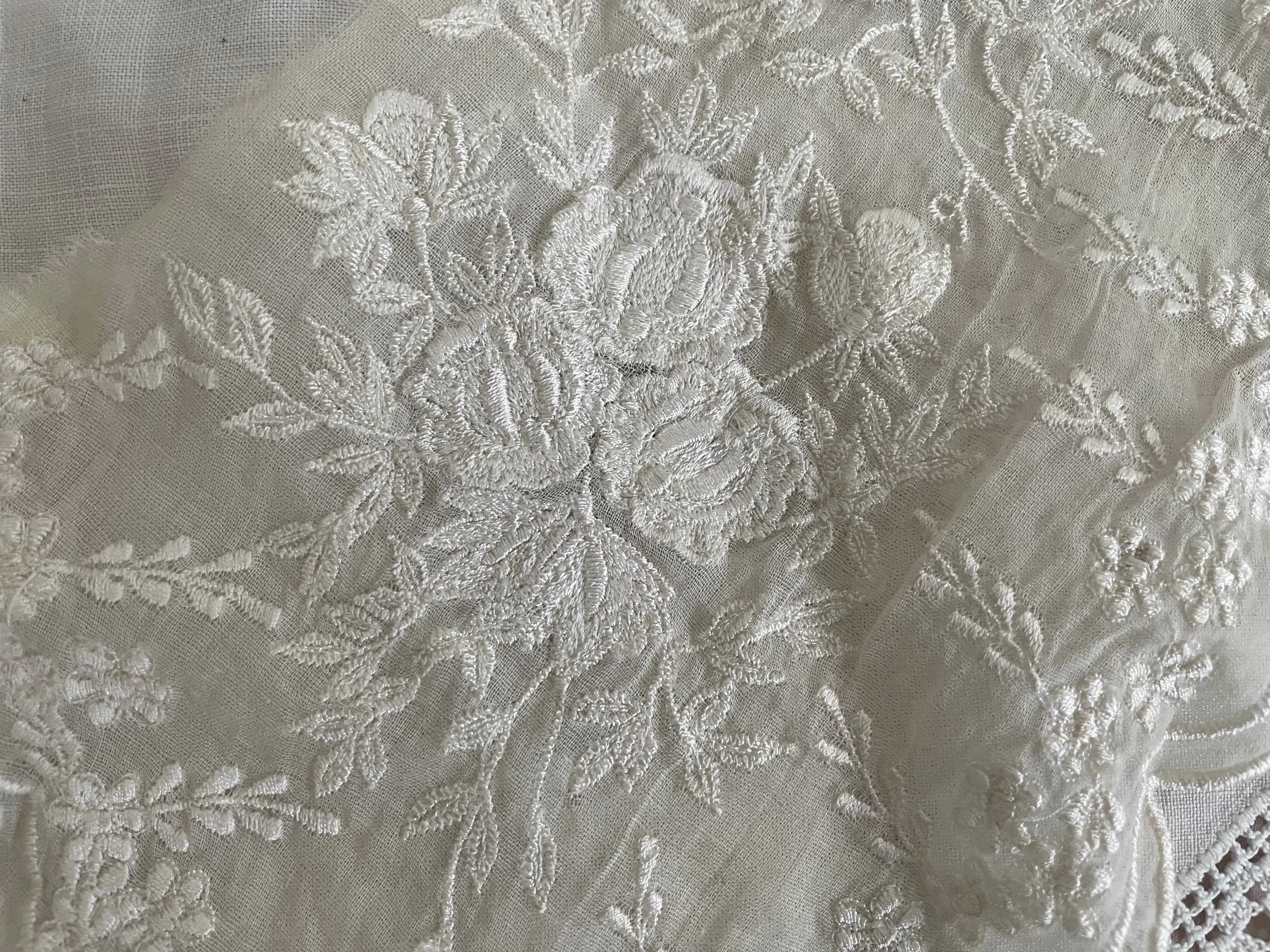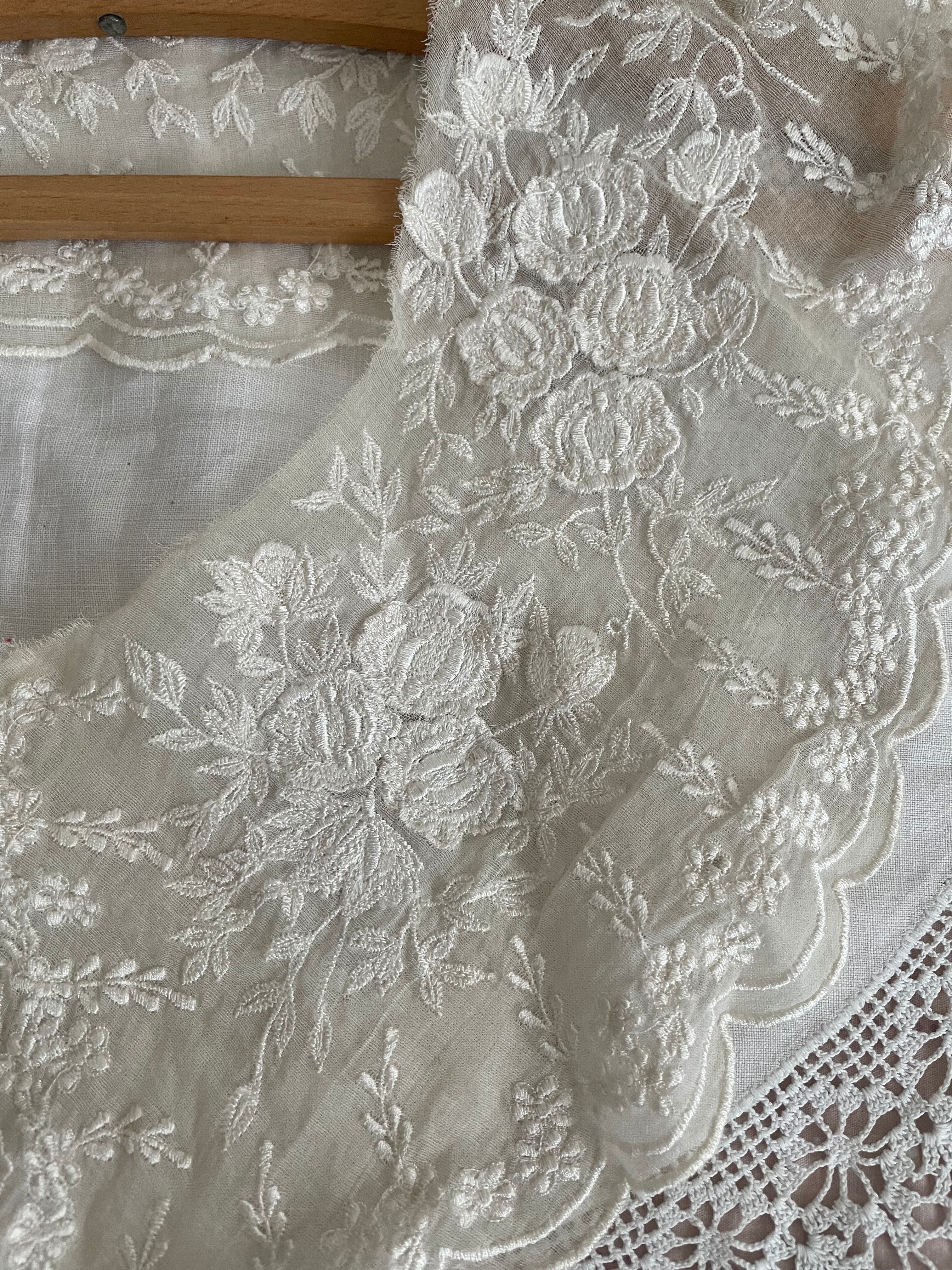 オーガンジ―に薔薇のモチーフが連なった美しいシルエットで