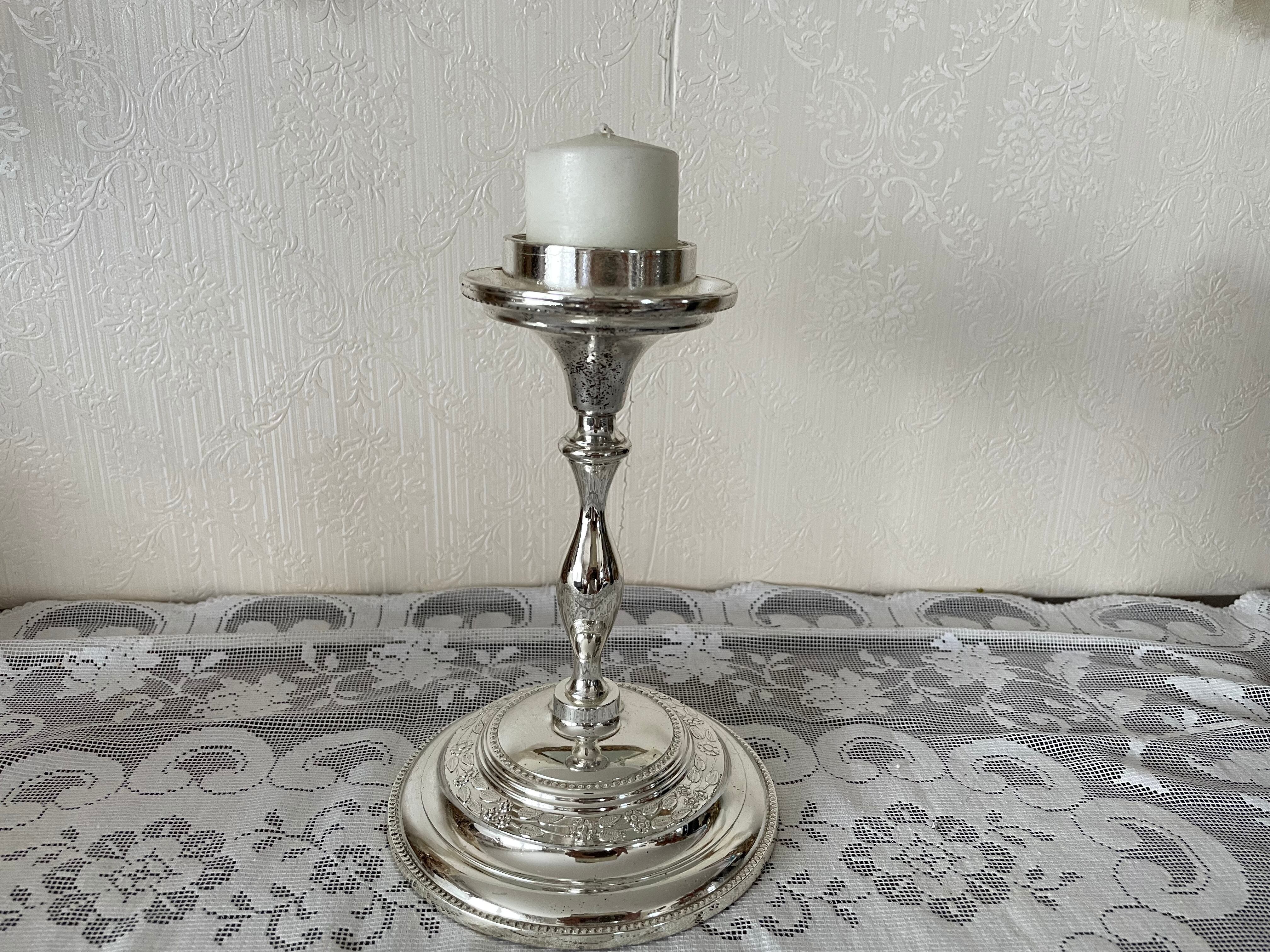 シルバープレートの台にガラスのシェード。