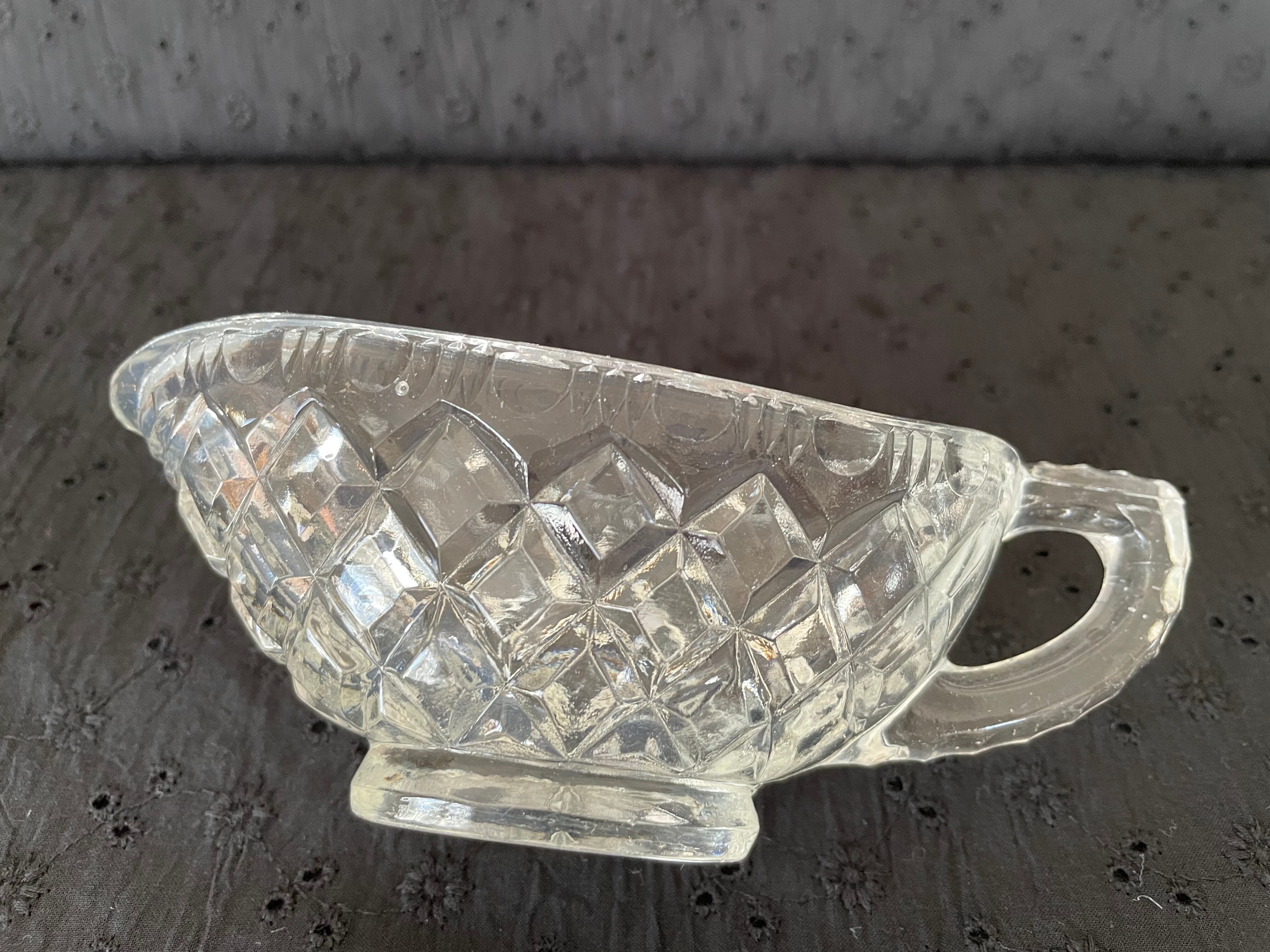 ダイヤ柄のエッチングの入ったぽってりとしたガラスです。