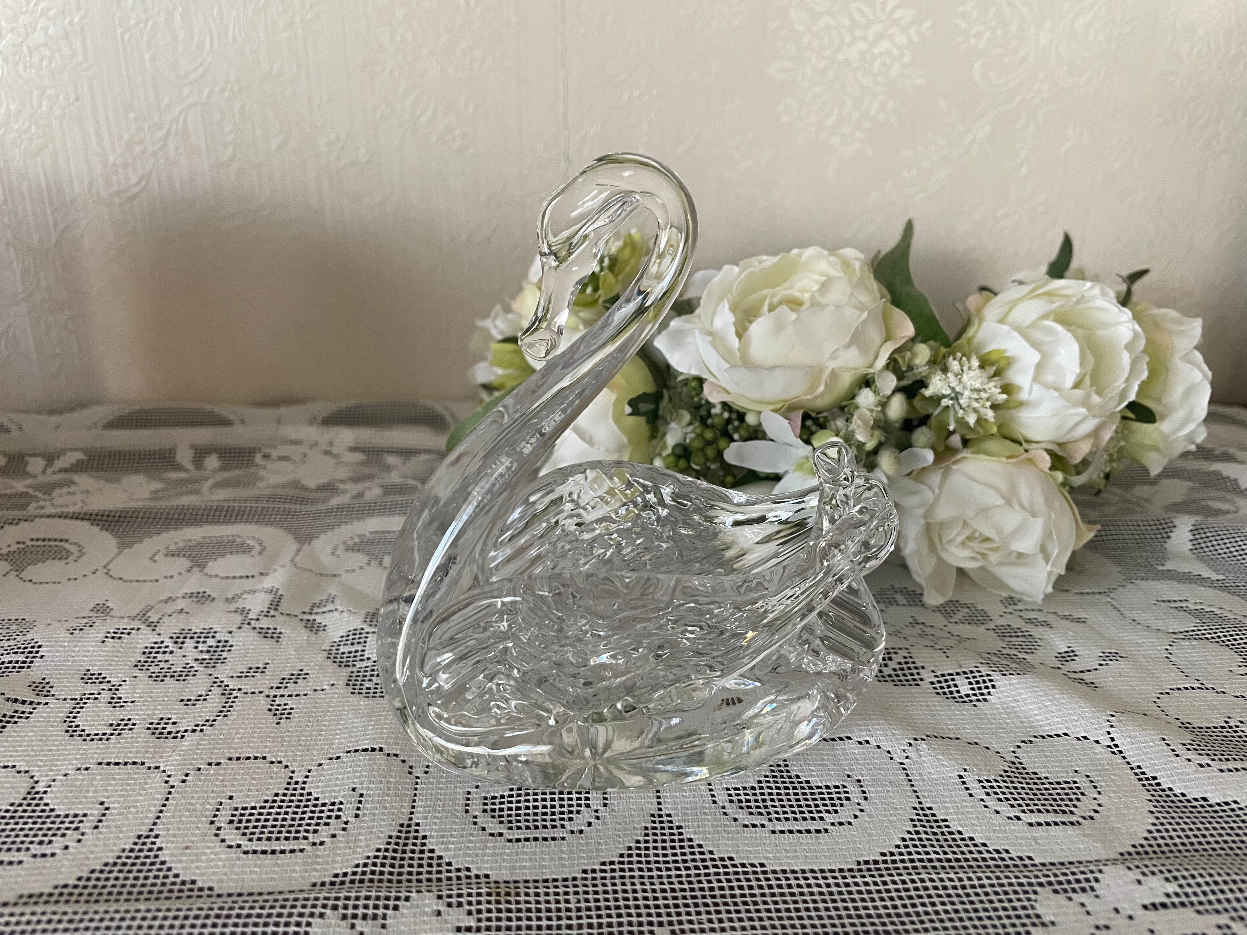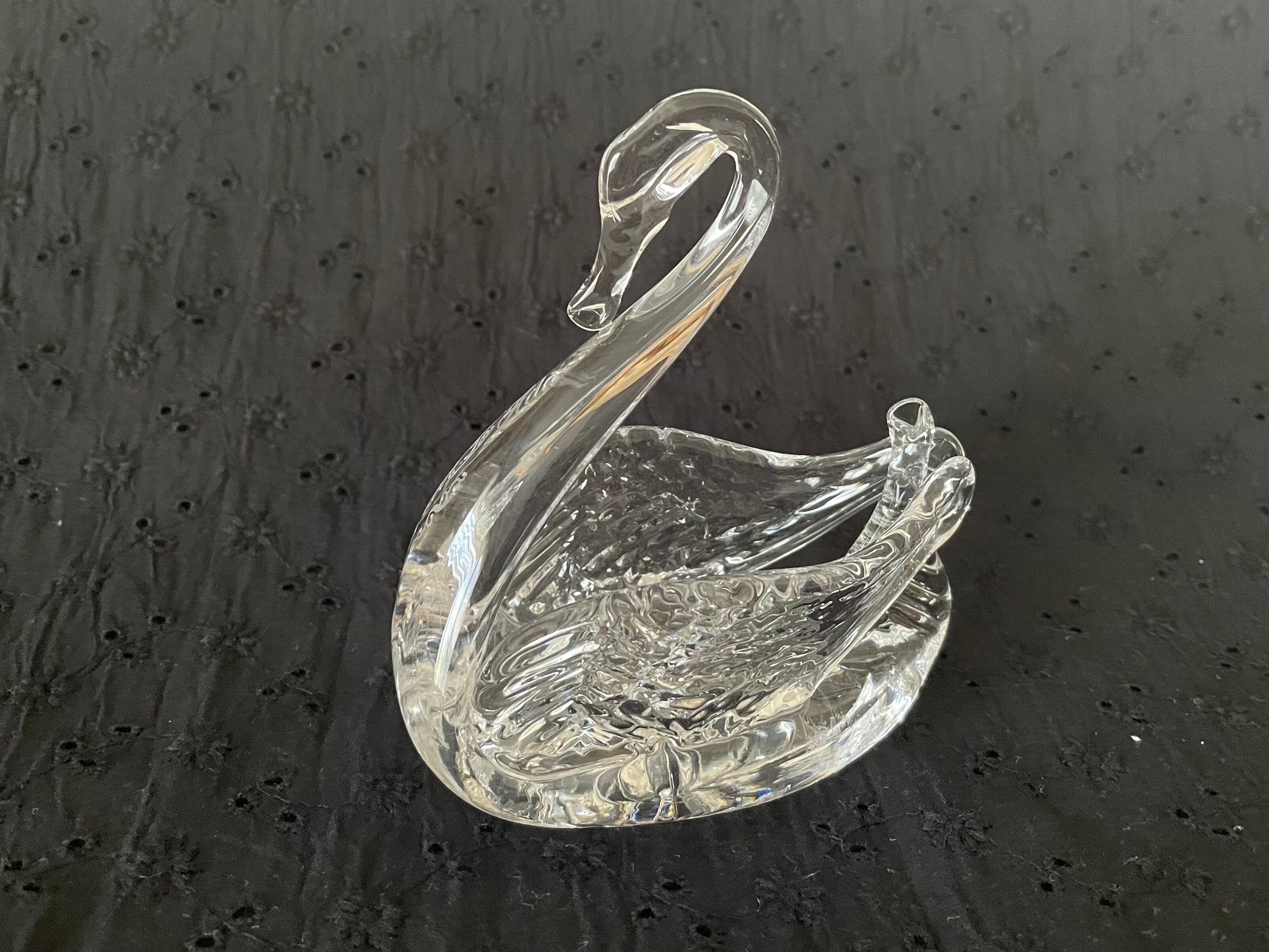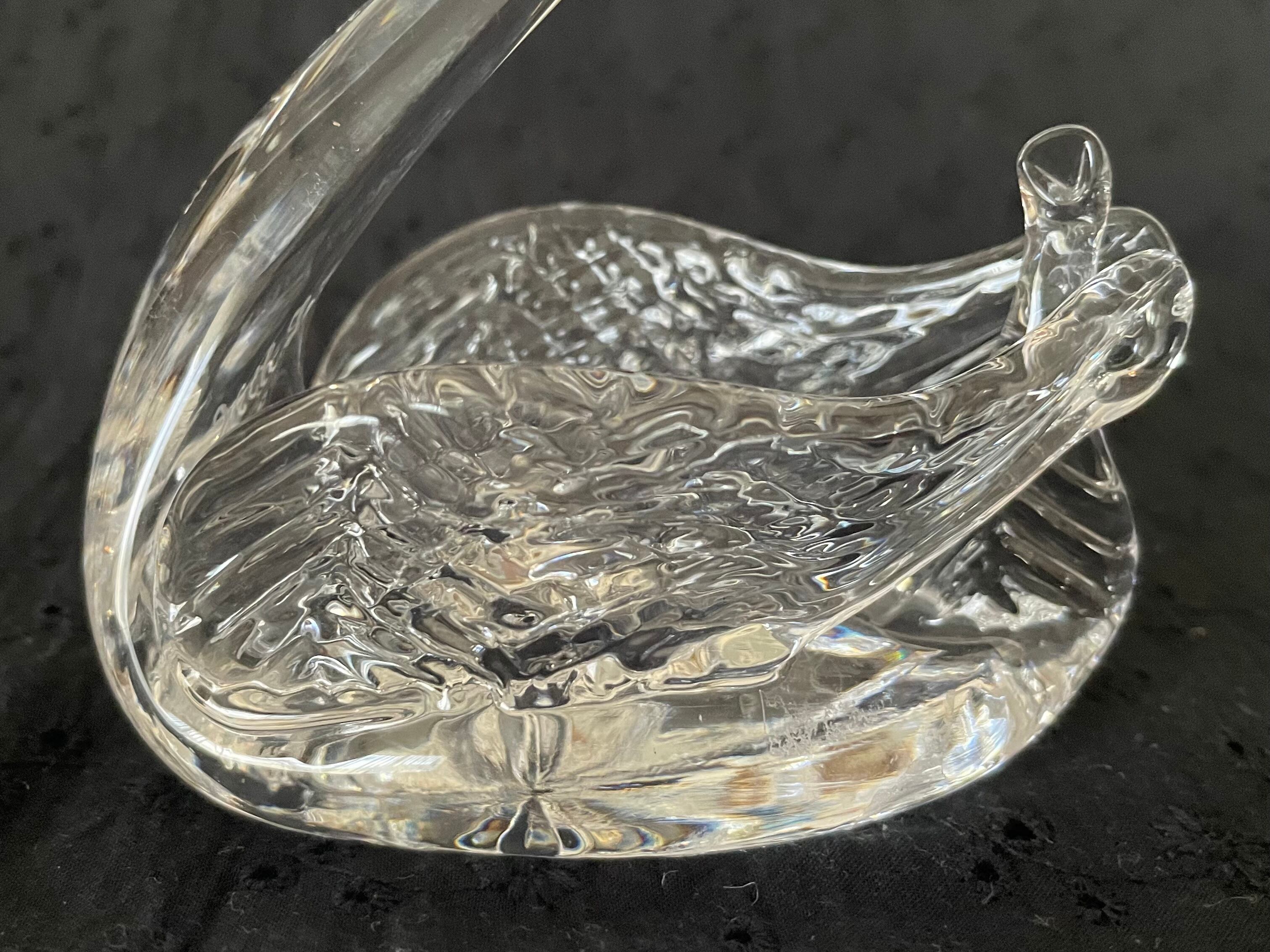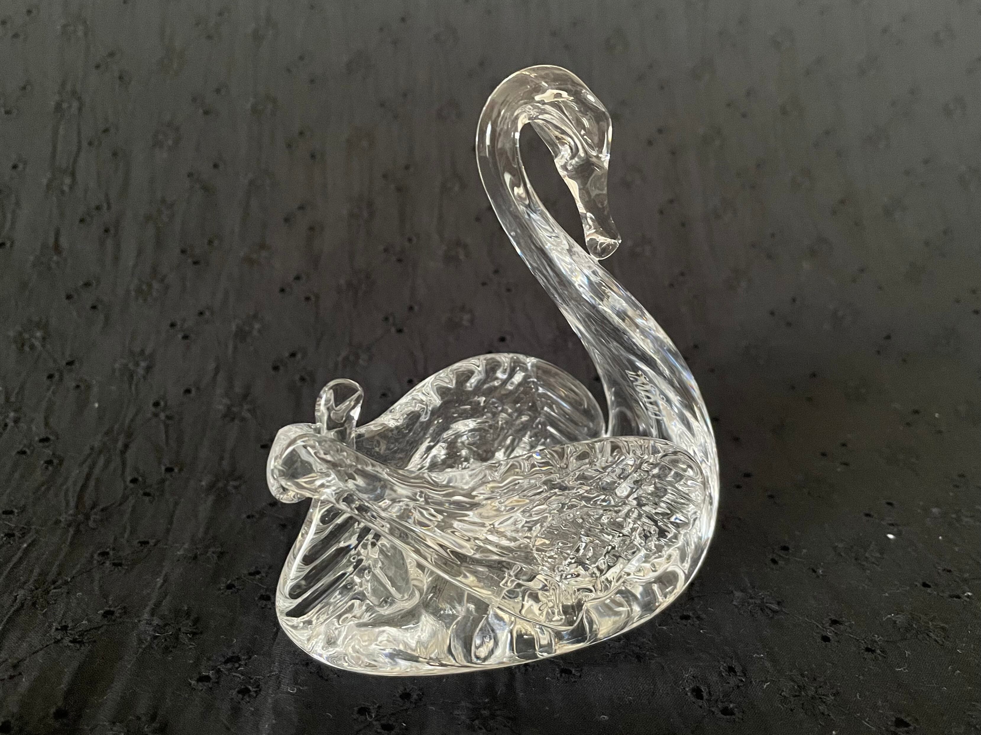 クリスタルガラスで作られた、白鳥の型をした小物入れです。