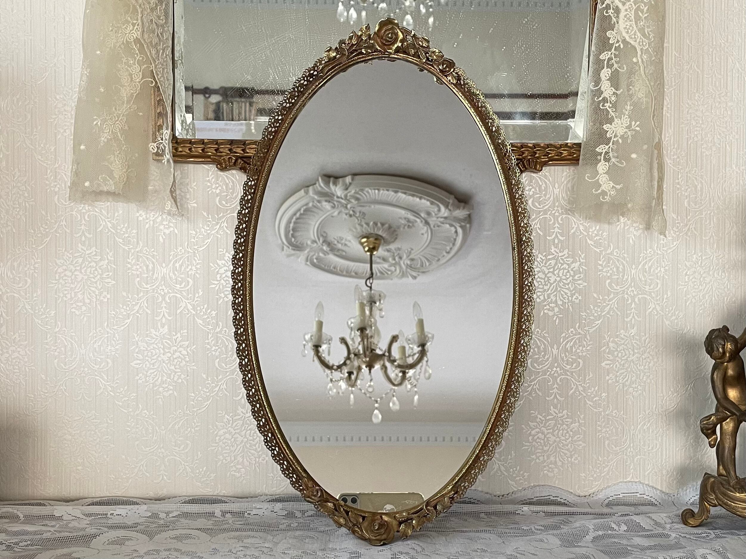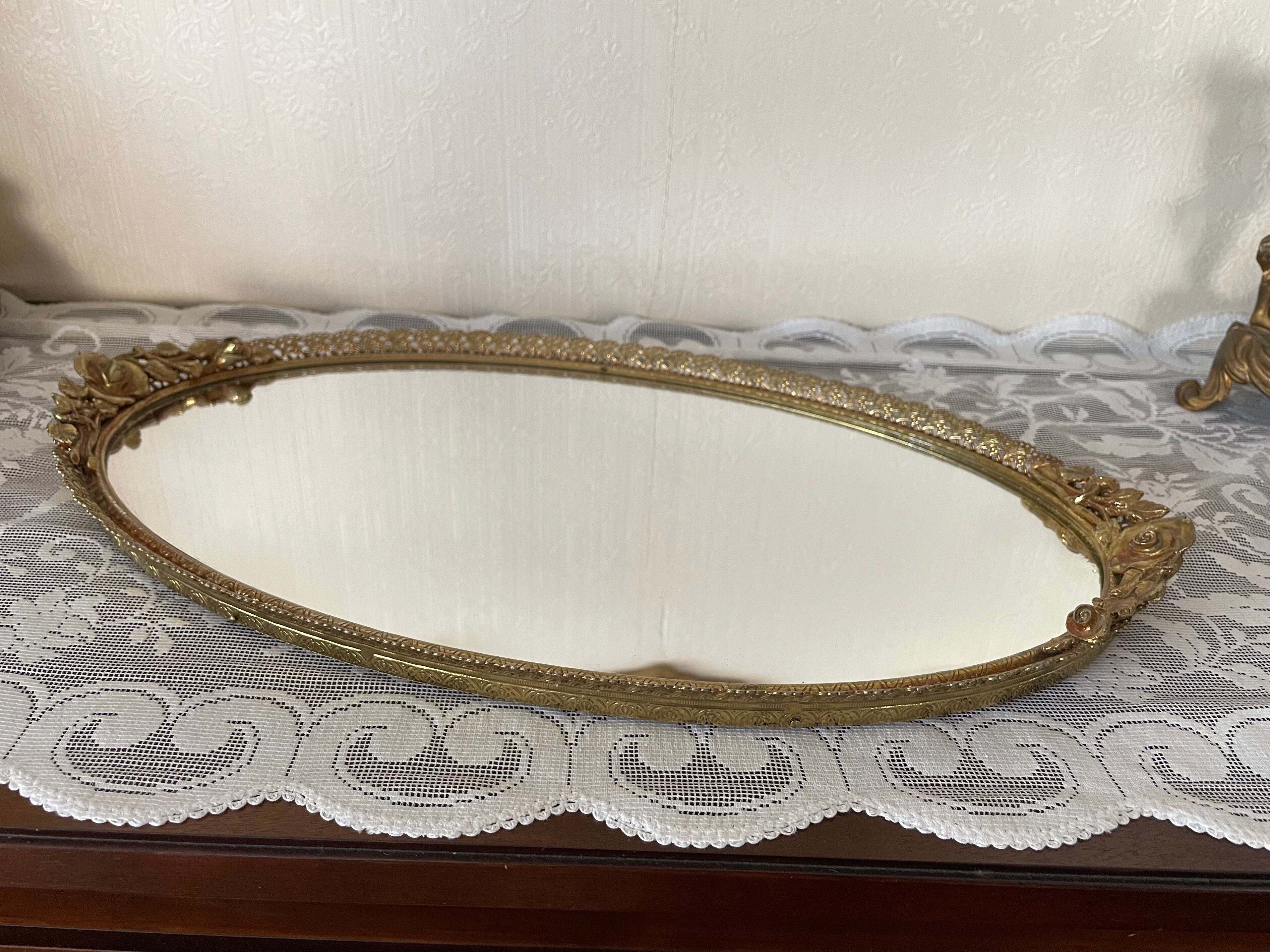 薔薇のレリーフが優美なミラートレー。
