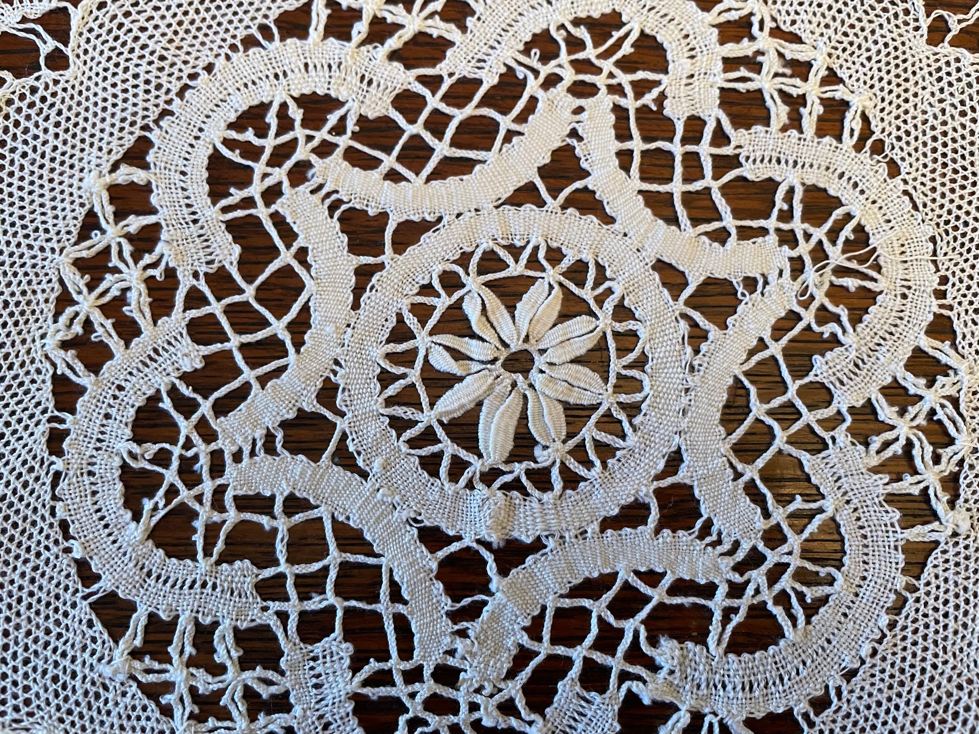 ドイリーとは、花瓶の下に敷いたり、テーブルセンターなどに使ったりする小さめのレースの事。